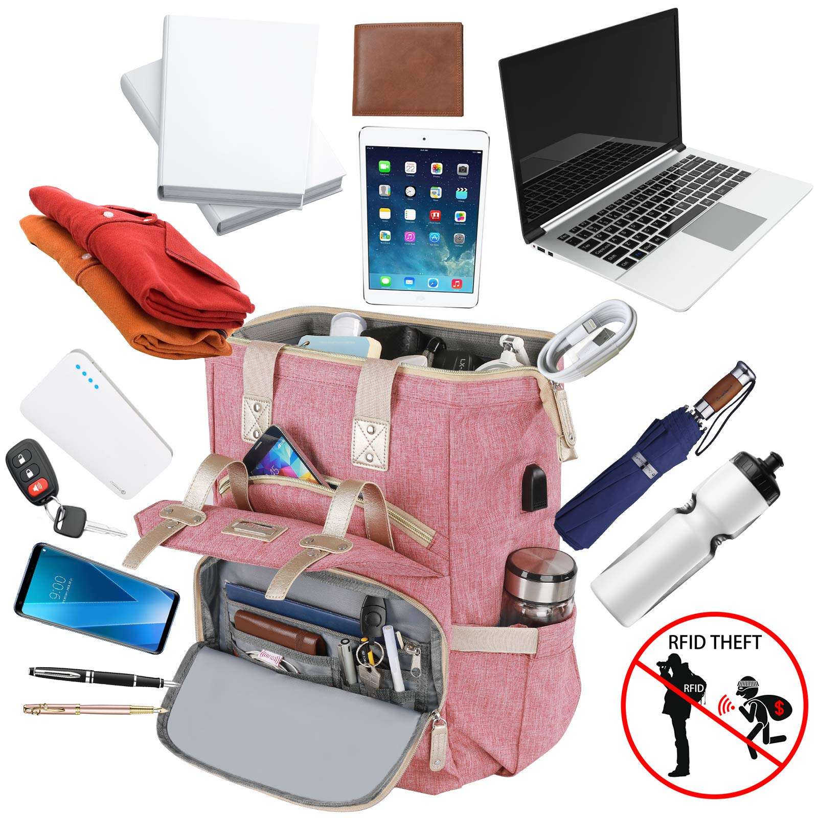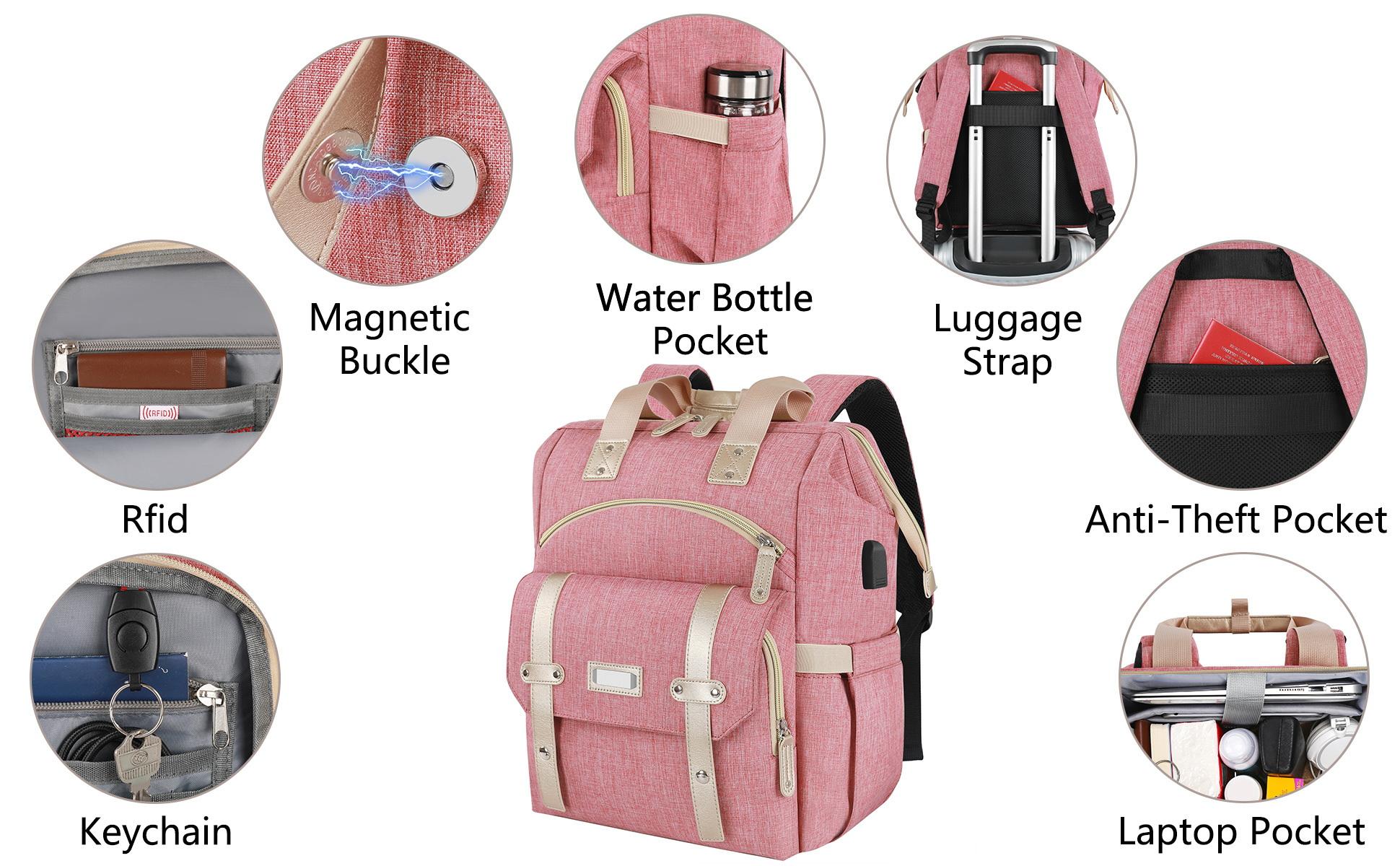 여성 노트북 RFID 도난 방지 15.6 인치 대형 USB 충전 포트 방수 간호사 배낭
