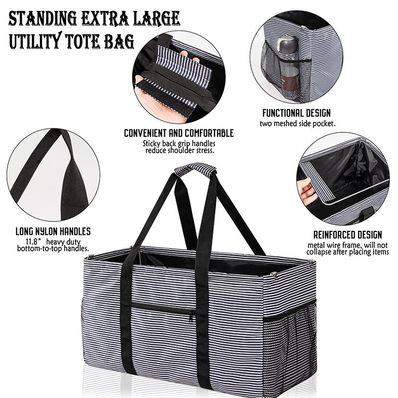 금속 와이어 프레임 접이식 식료품 보관  초대형 유틸리티 토트 백