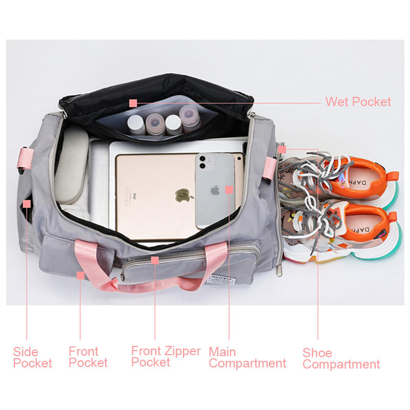 여행 수하물 핸드백 여성 체육관 스포츠 더플 백 신발 칸이있는 별도의 젖은 주머니