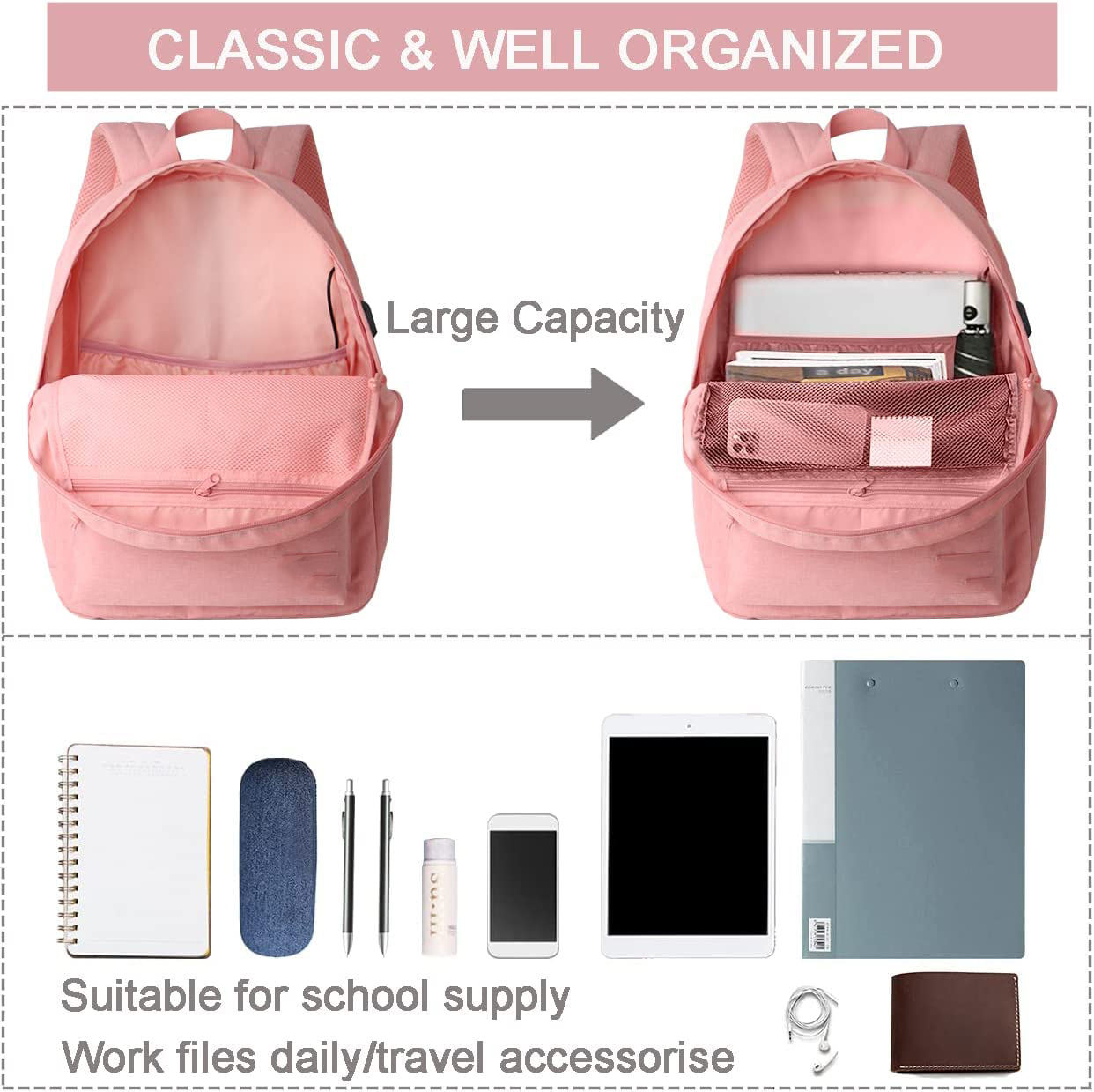 클래식 스타일리시 방수 귀여운 캐주얼 학교 여행 노트북 백팩