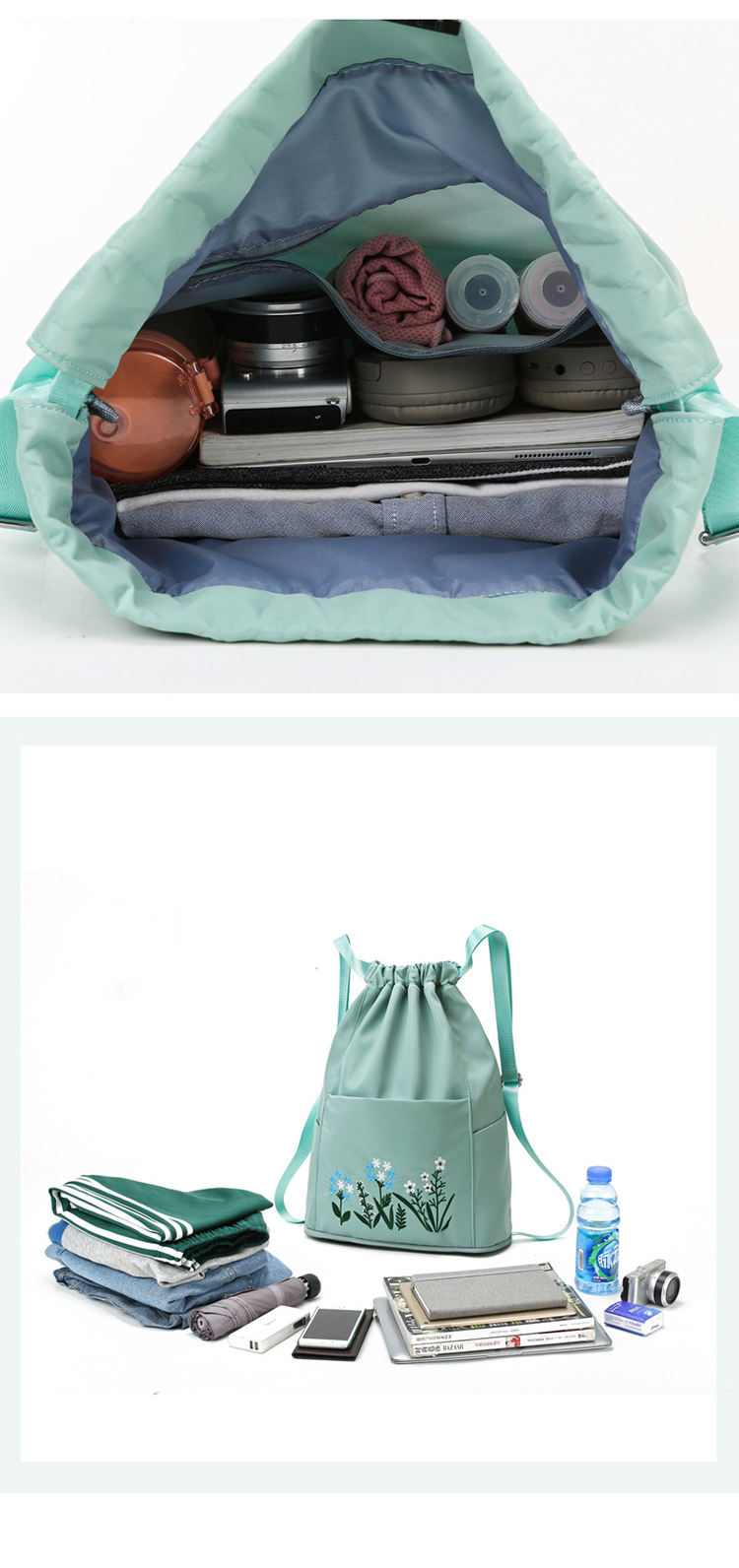 새로운 수 놓은 옥스포드 졸라 매는 끈 배낭 대용량 패션 야외 가방