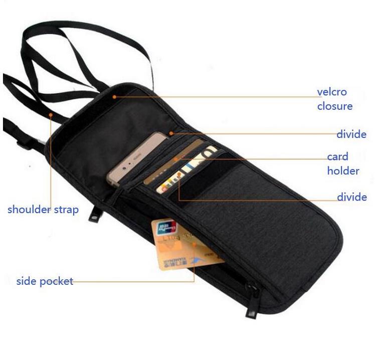 여권 홀더RFID 휴대용 여행 주머니 목 지갑