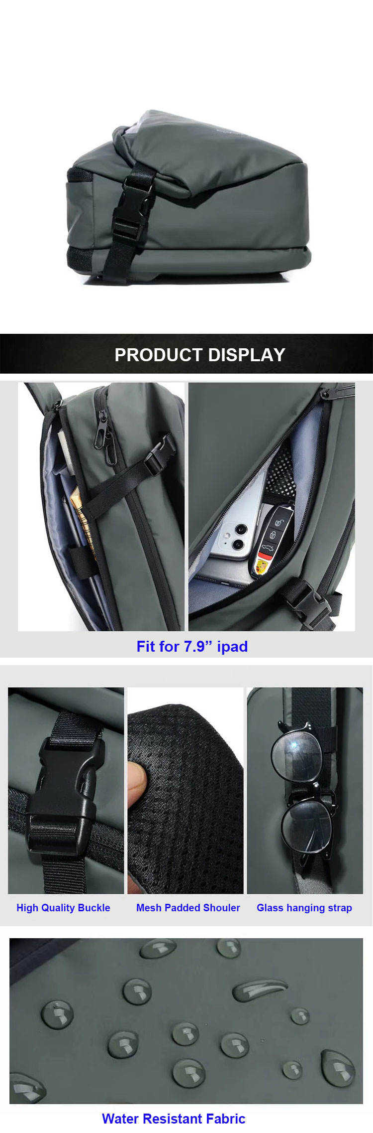 방수 나일론 도난 방지 슬링 크로스 바디 원 숄더 백팩