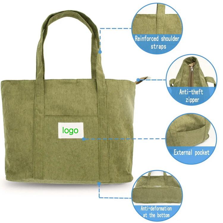 대형 공간 휴대용  쇼핑 식료품 저렴한  코듀로이 토트 백
