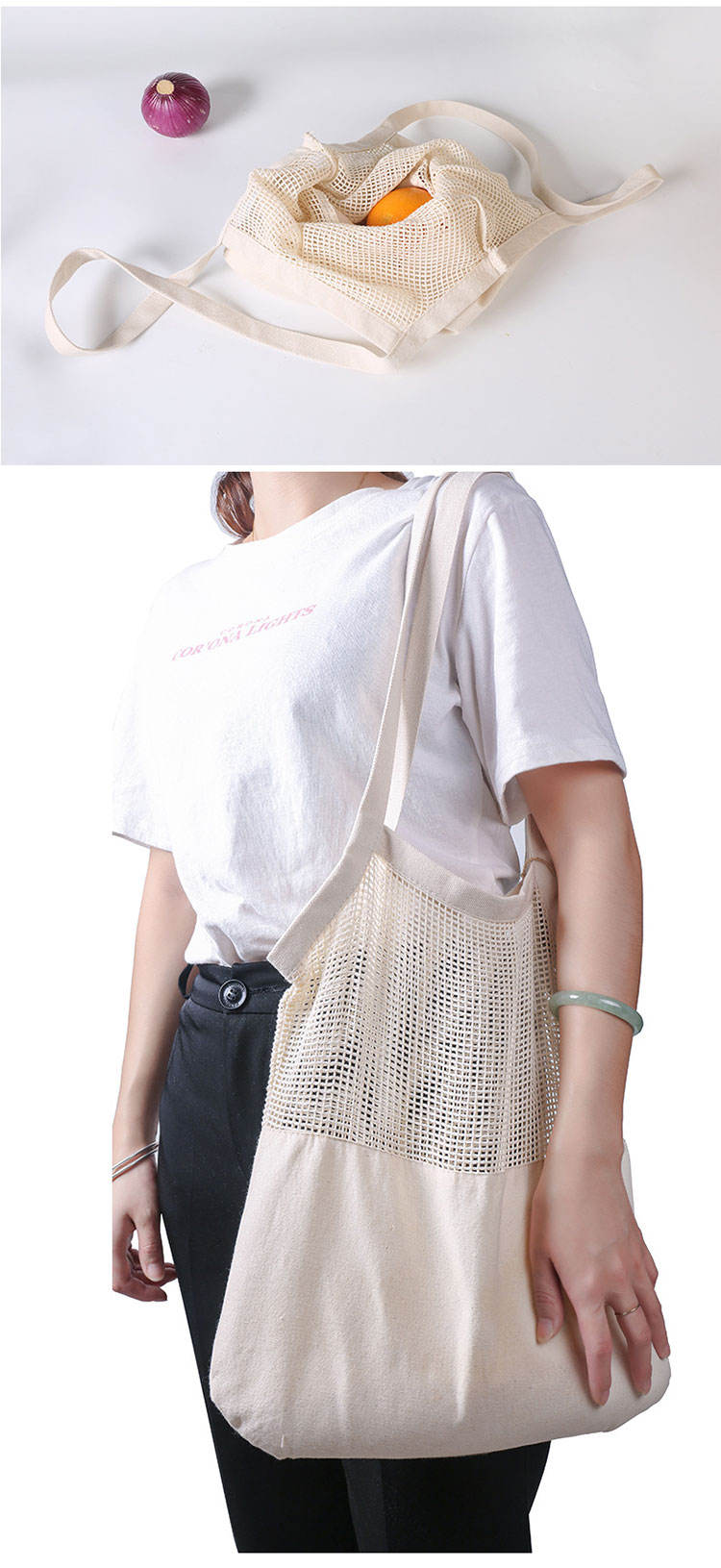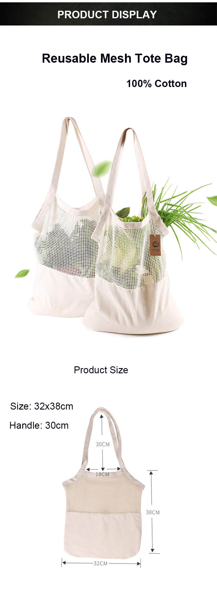 강화된 바닥 eco 재사용할 수 있생물 분해성 메시 끈달린 가방