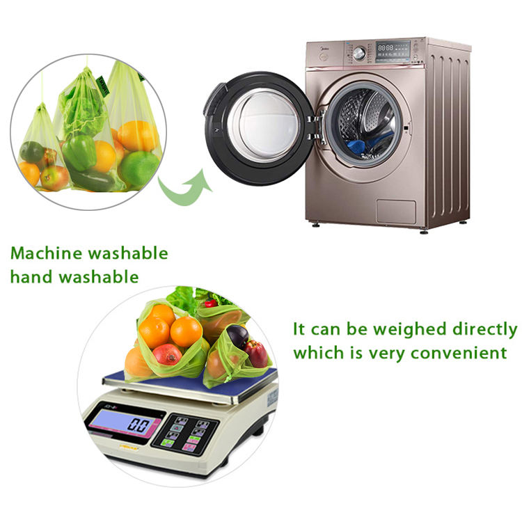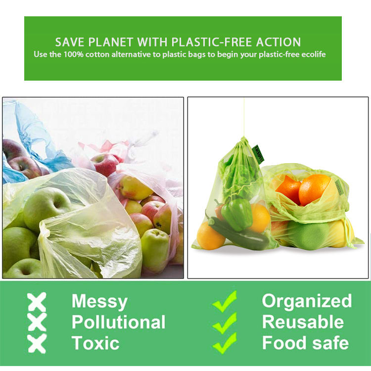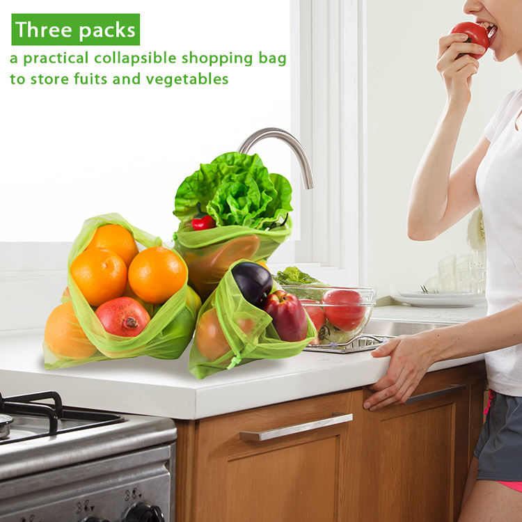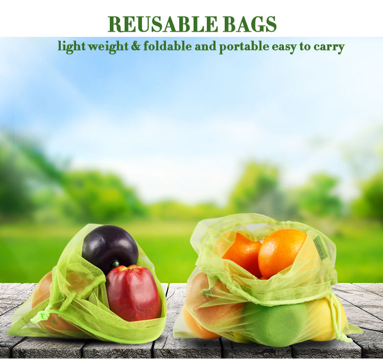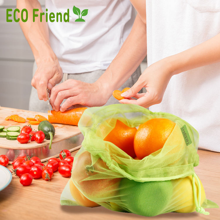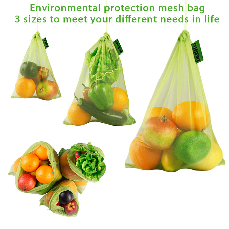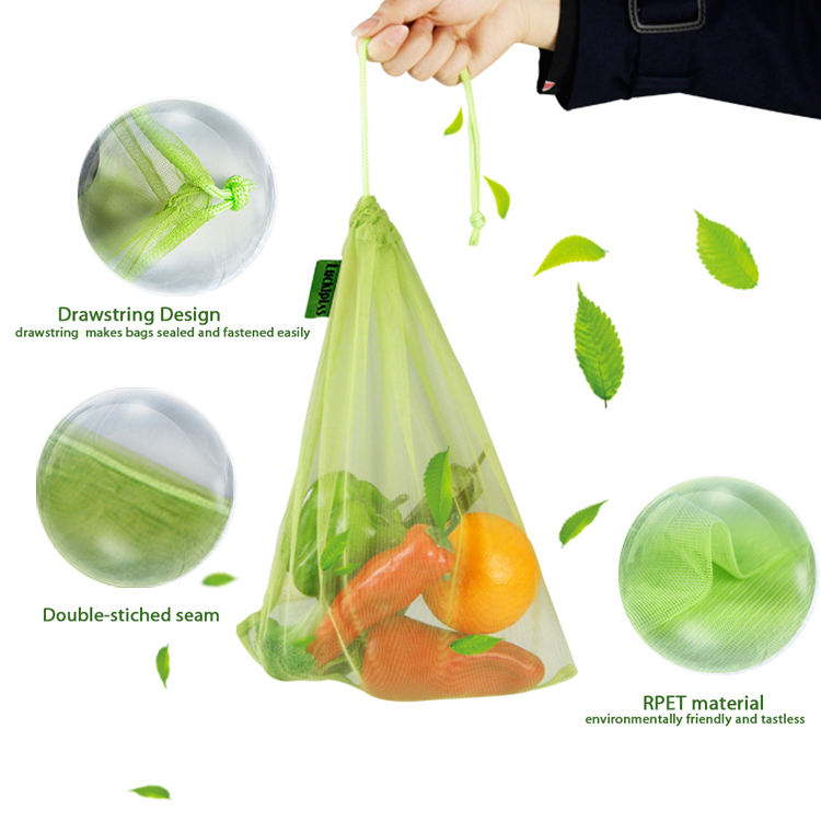 재사용할 수 있는 Eco 졸라매는 끈 과일 쇼핑 RPET 메시