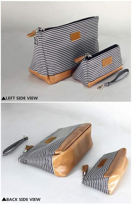 줄무늬 여행 세면용품 메이크업 부대