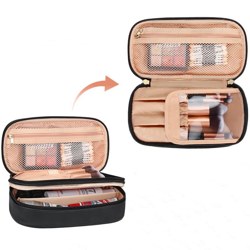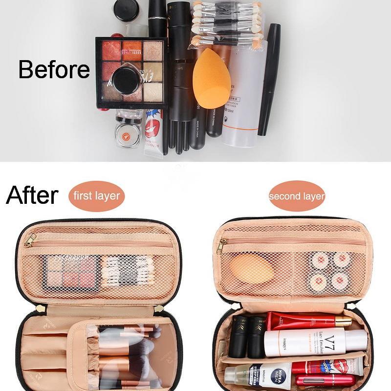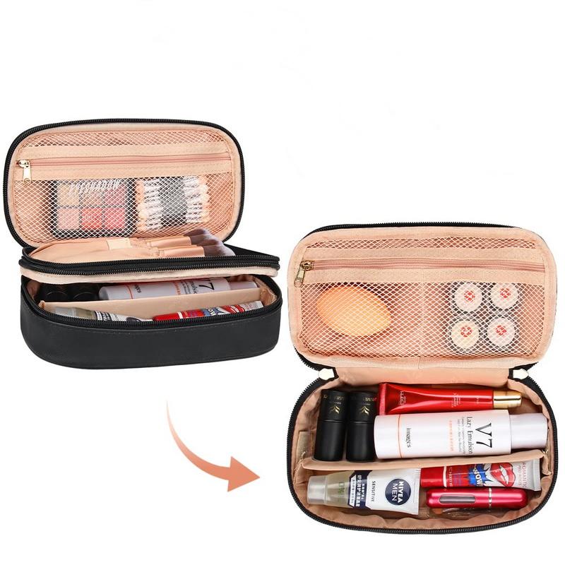 여행 가죽 더블 레이어 화장품 가방