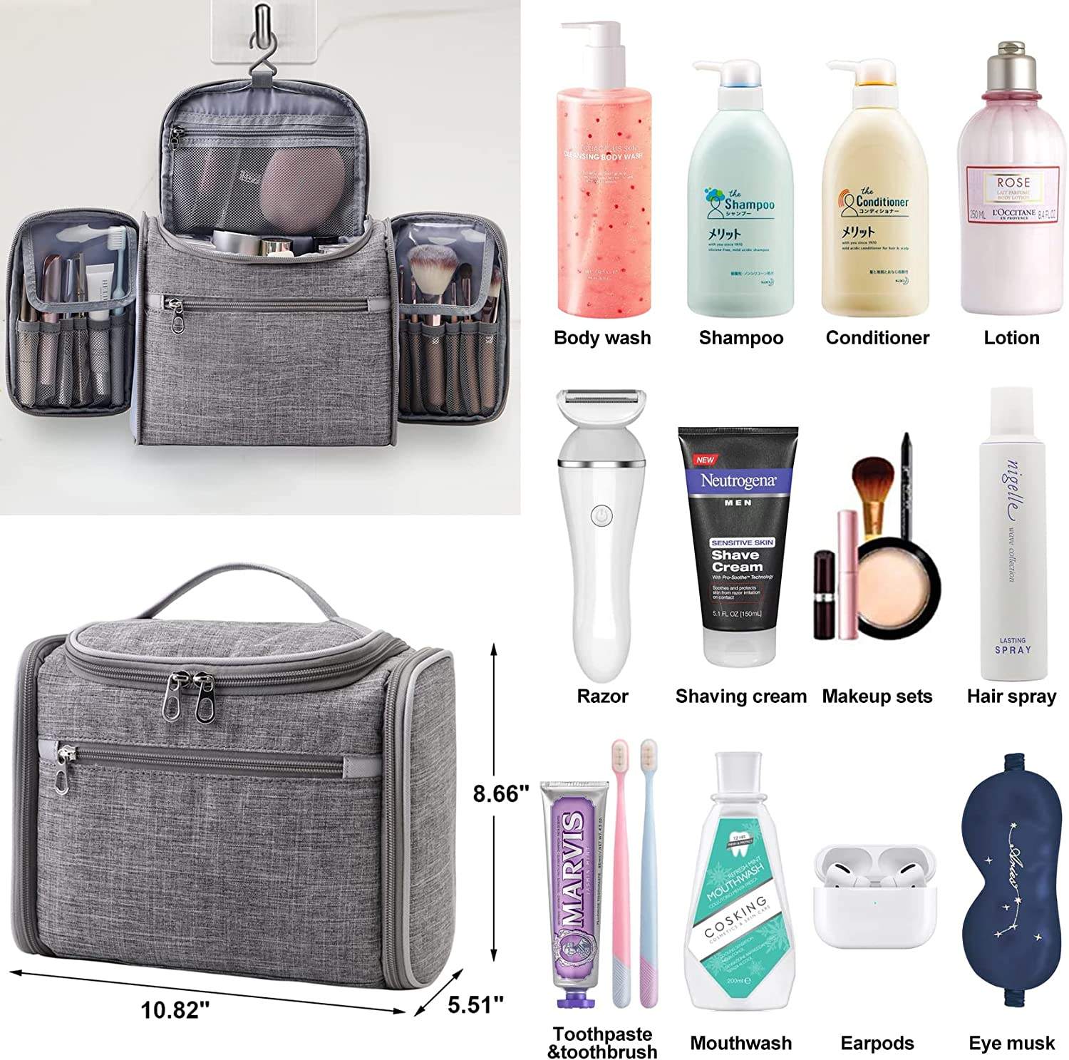 휴대용 대용량 다기능 교수형 세면 용품 가방