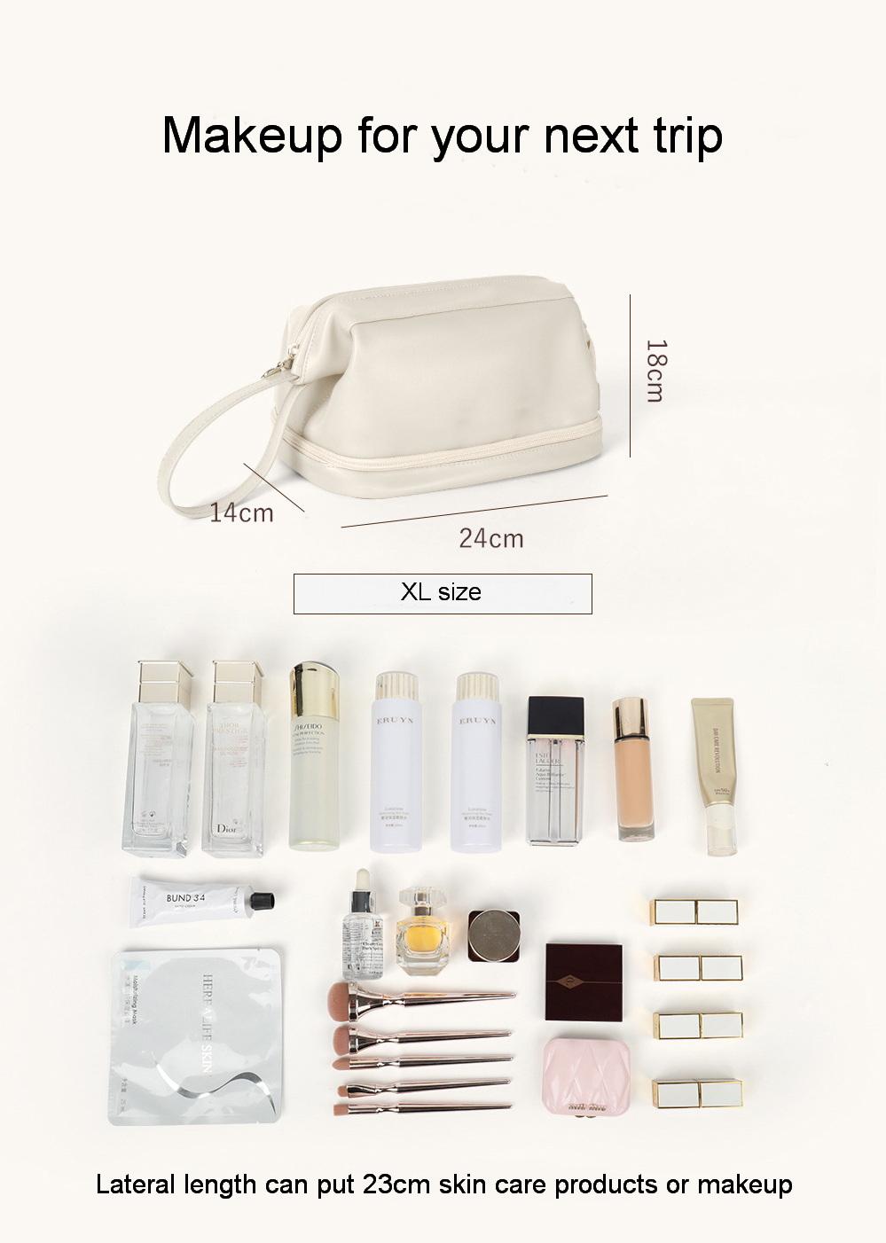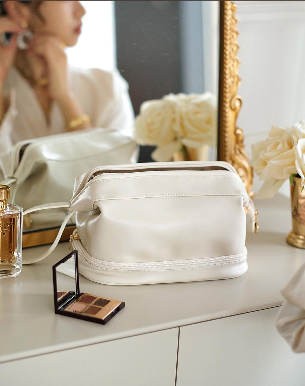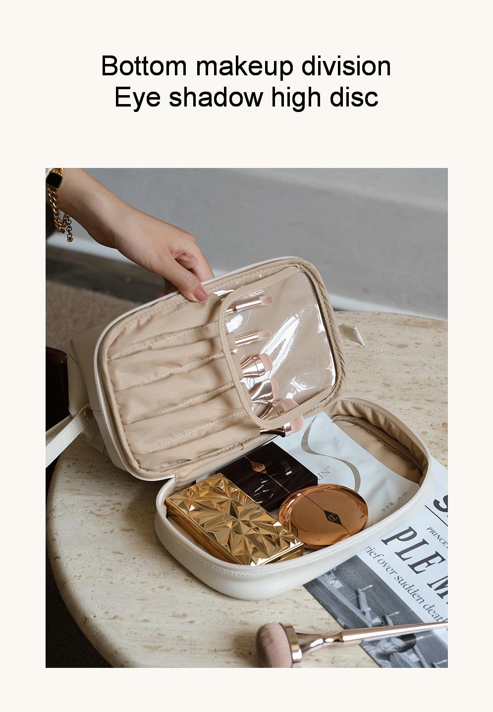 슈퍼 핫 소녀 휴대용 고급 간단한 더블 레이어 탄성 부드러운 가죽 더블 클라우드 메이크업 가방