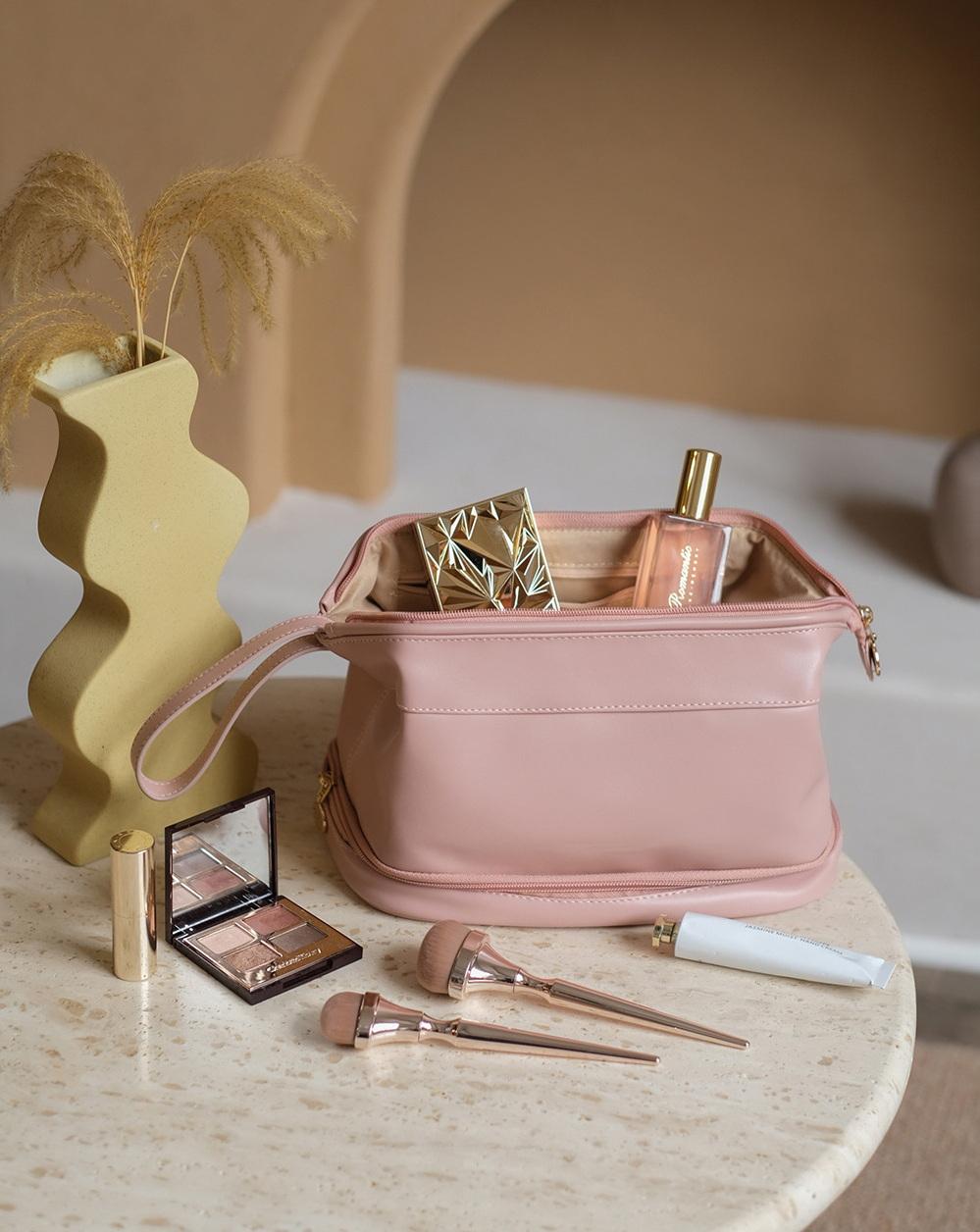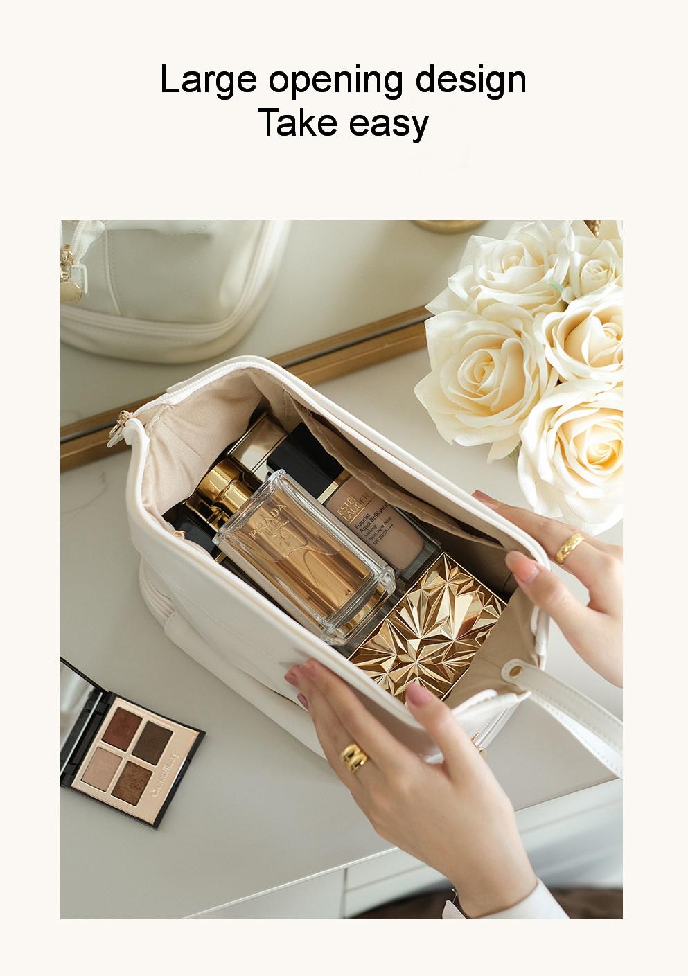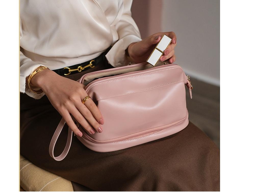 슈퍼 핫 소녀 휴대용 고급 간단한 더블 레이어 탄성 부드러운 가죽 더블 클라우드 메이크업 가방