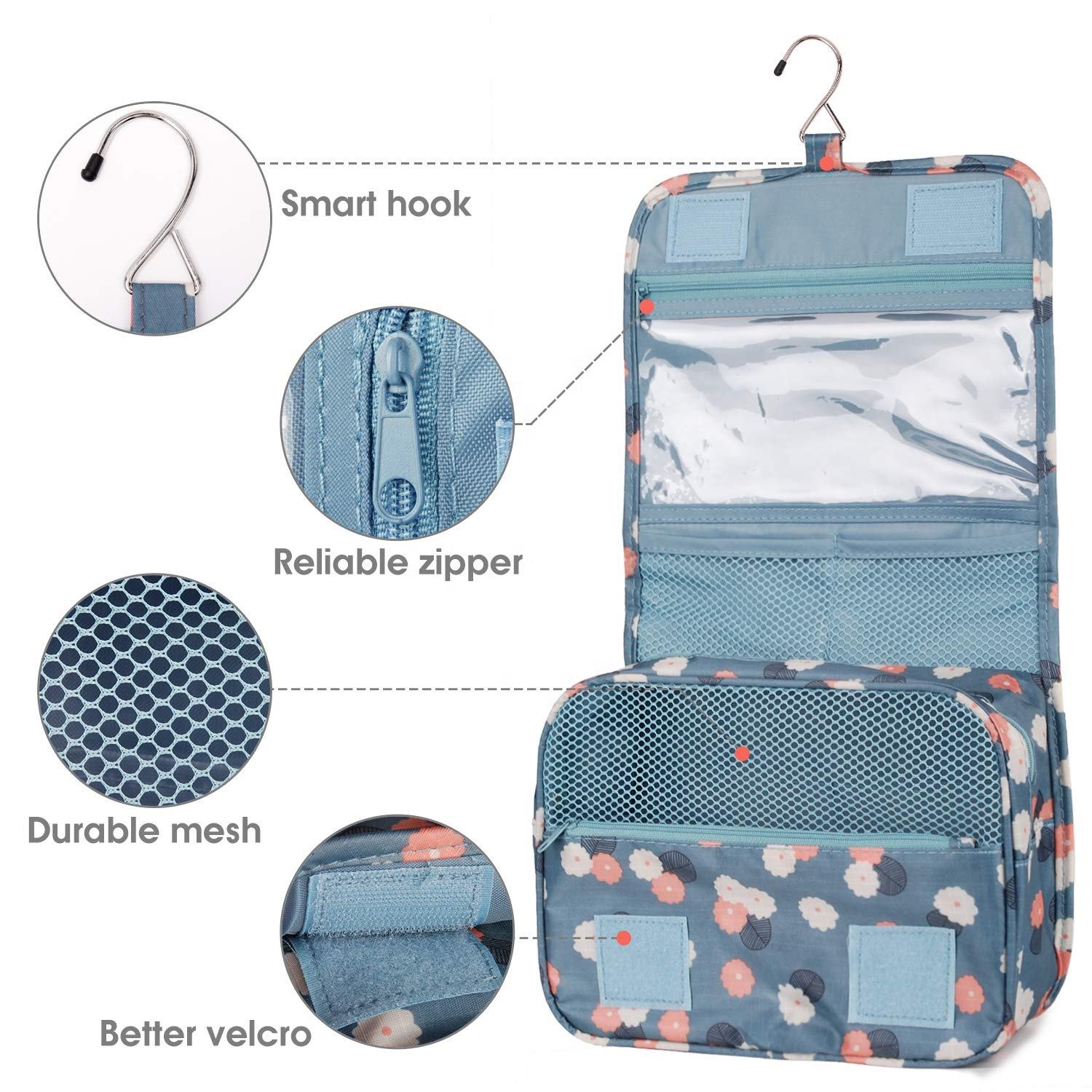 걸이를 가진 다채로운 여행 세면용품 부대