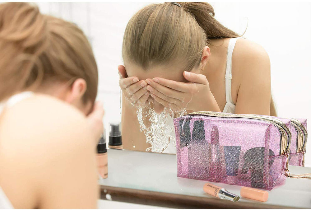 방수 명확한 자필 반짝임 PVC 화장용 부대