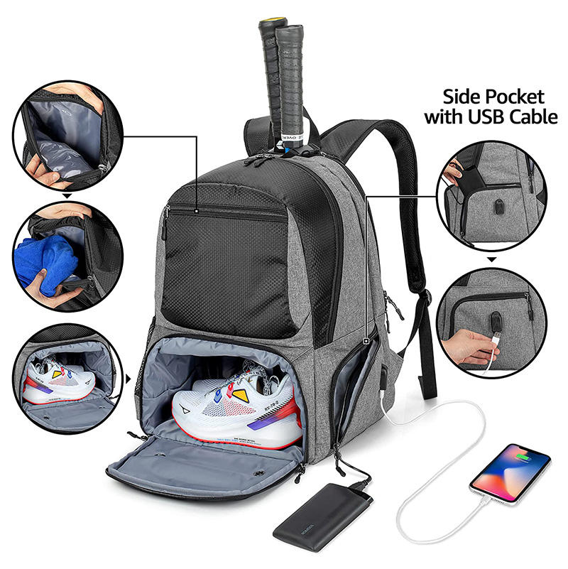 대용량 별도의 신발 구획 테니스  2 개의 라켓 패들 백