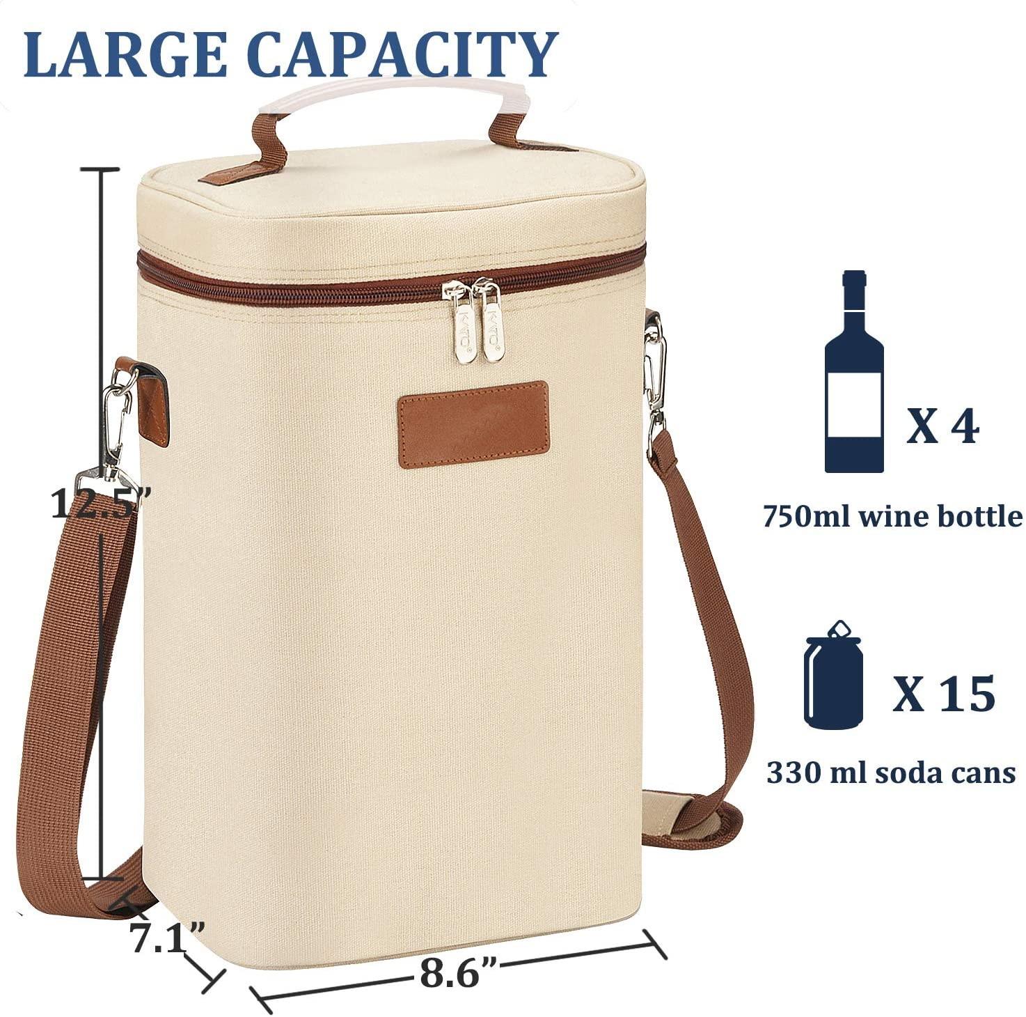 누출 방지 및 절연 패딩 휴대용 다목적 옥스포드 운반 쿨러 토트 백 4 병 와인 캐리어