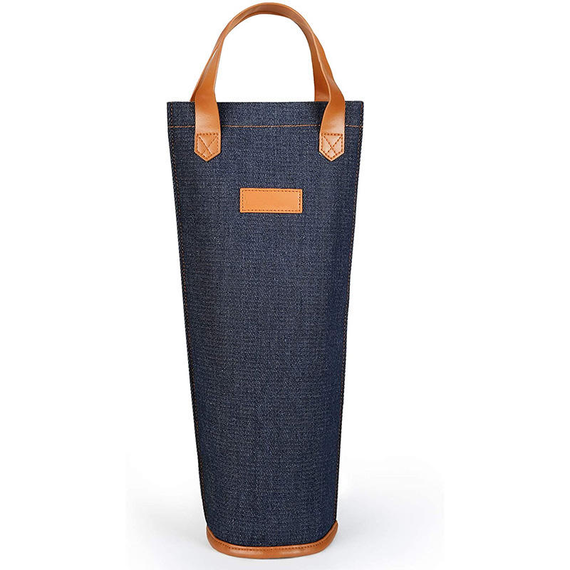 유행 와인 절연 쿨러 토트 백 가죽 손잡이