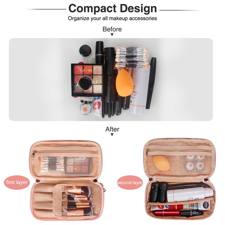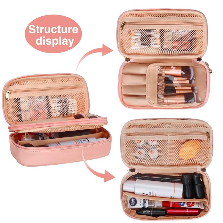 휴대용 방수 여행 세면 용품 핑크 컬러 여성 브러시 슬롯 포켓과 가방