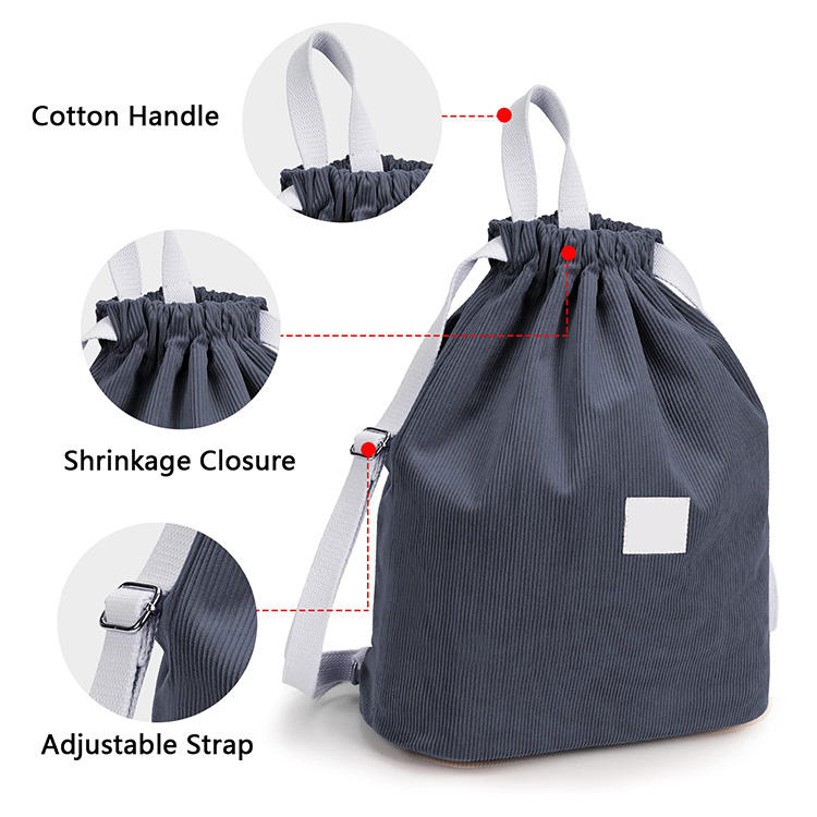 코듀로이 쇼핑 드로스트링 백 대용량 드로스트링 데이 팩