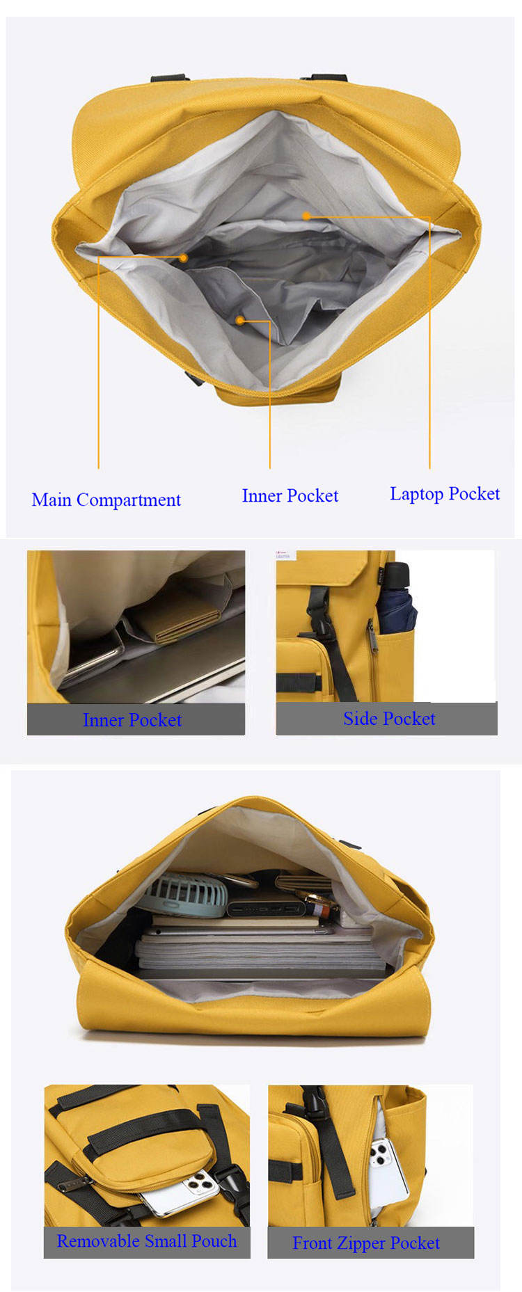 분리형 파우치 대형 롤 탑 대학 학교 배낭