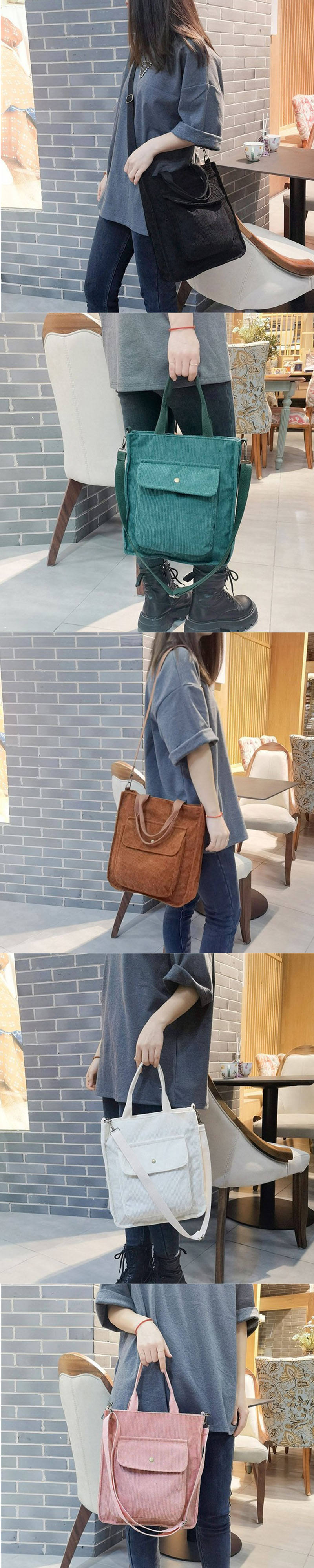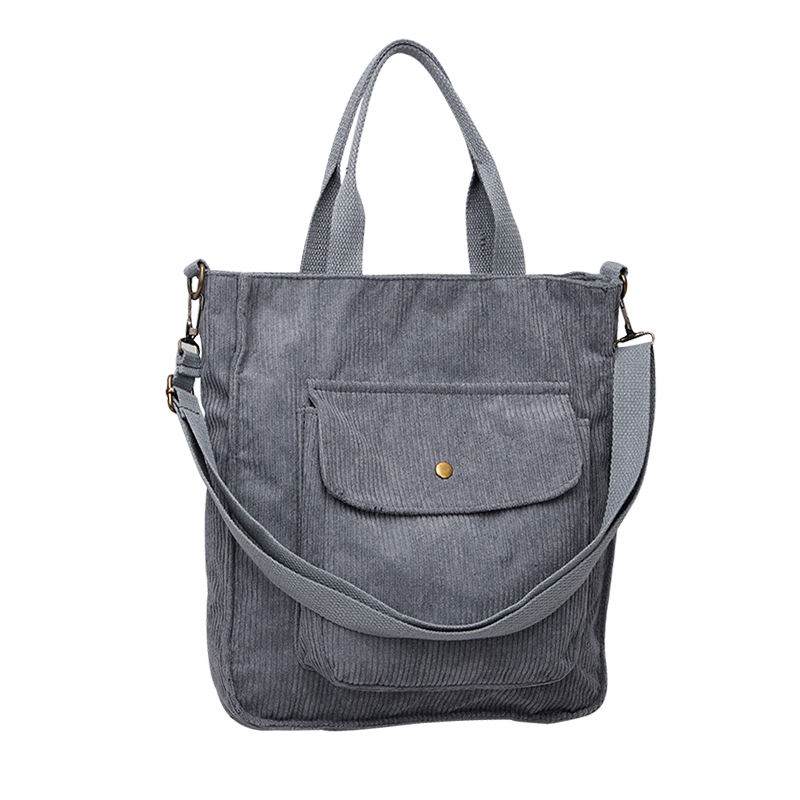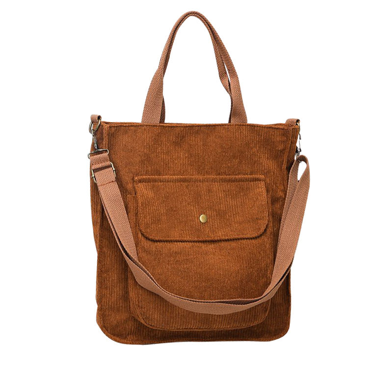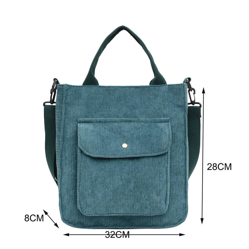 대형 코듀로이 토트 크로스 바디 패브릭 숄더 백 프론트 포켓 사무실 학교 쇼핑