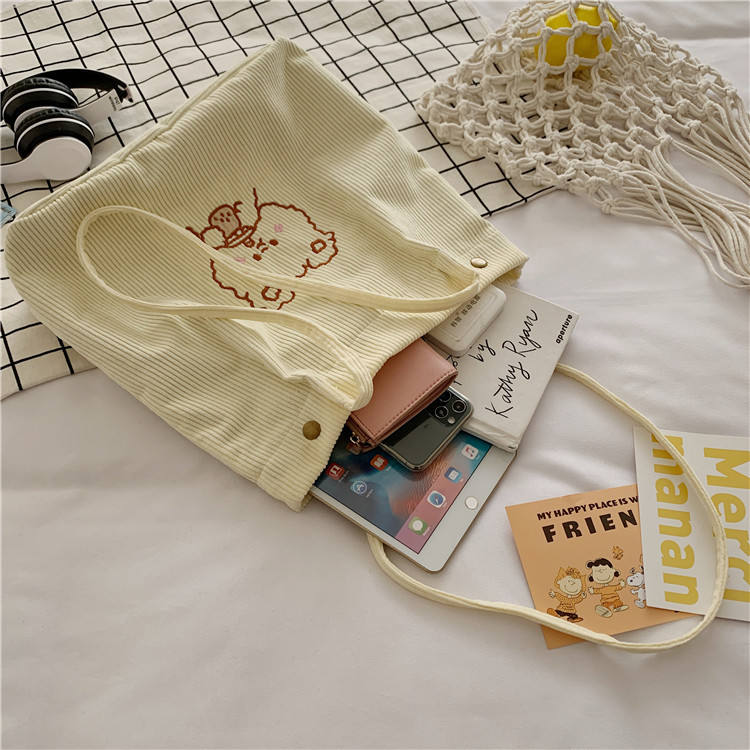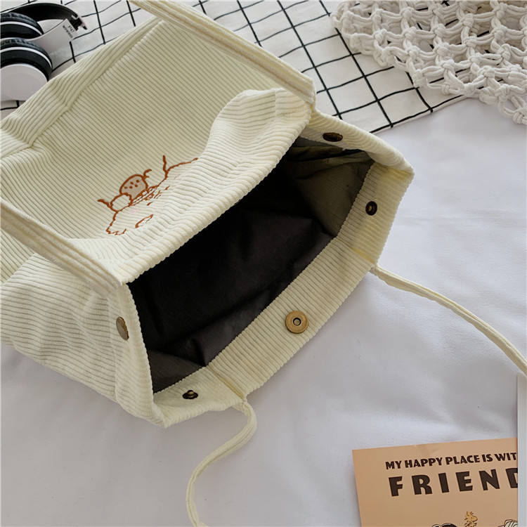 화이트 코듀로이 토트백 숄더백 학교 쇼핑 업무용