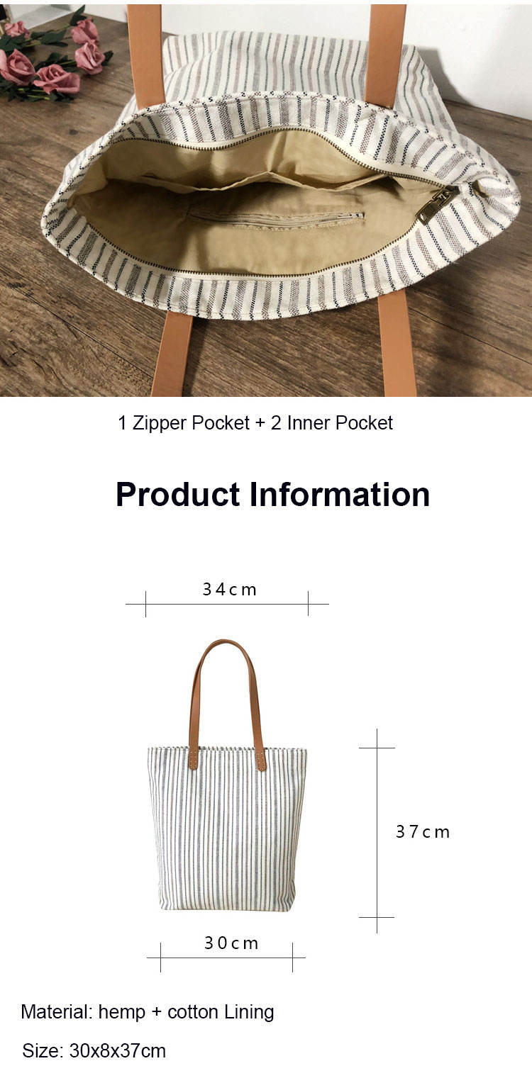 여자 캔버스 토트 숄더 백 여행 학교 쇼핑 내부 포켓
