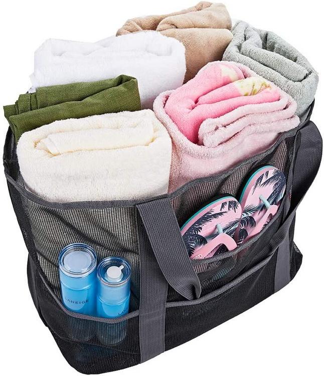 Amazon hotsale 대형 통기성 냄새 방지 메쉬  비치 장난감 토트 백