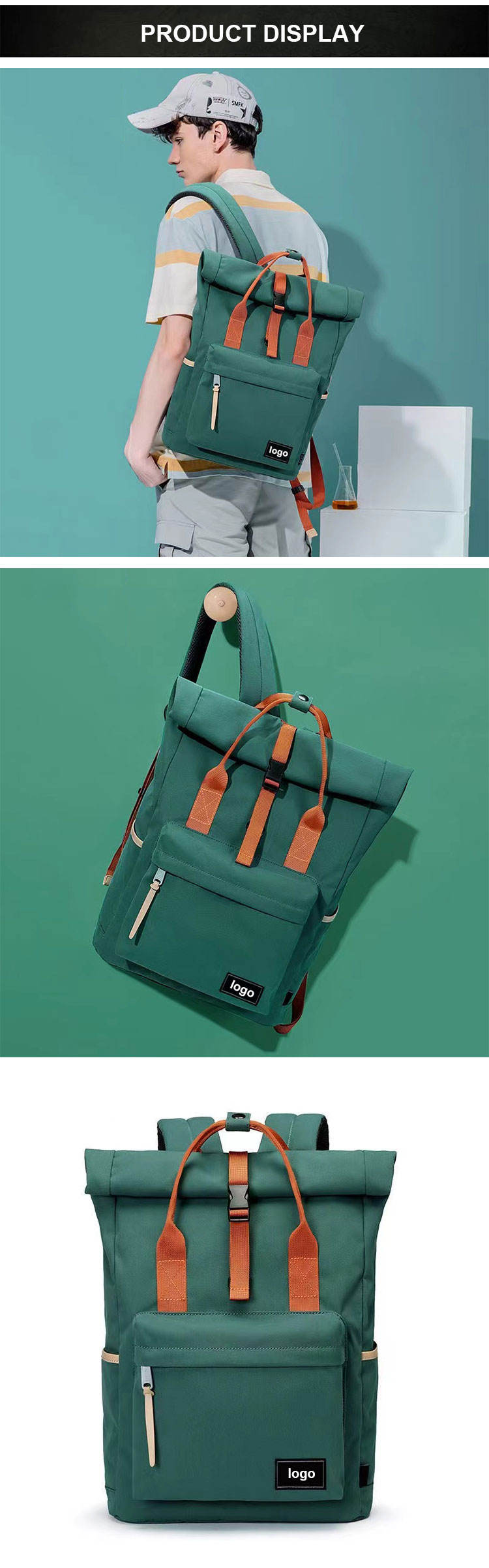 다기능 확장형 롤 탑 여행 노트북 배낭