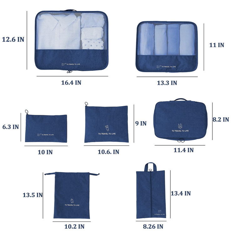 7pcs 세트 접이식 휴대 수하물 여행용 압축 포장 큐브