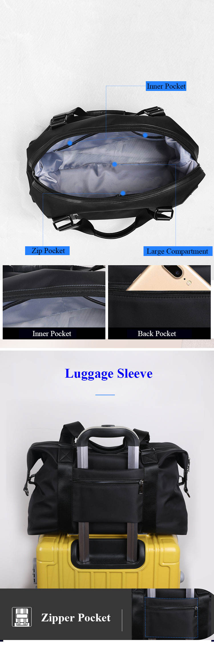 수하물 슬리브가 있는 방수 여행 토트 더플 백