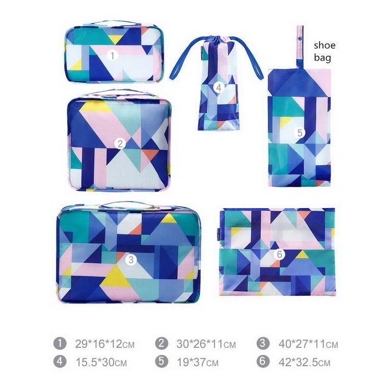 패션 디지털 인쇄 방수 6 개 세트 여행 포장 큐브
