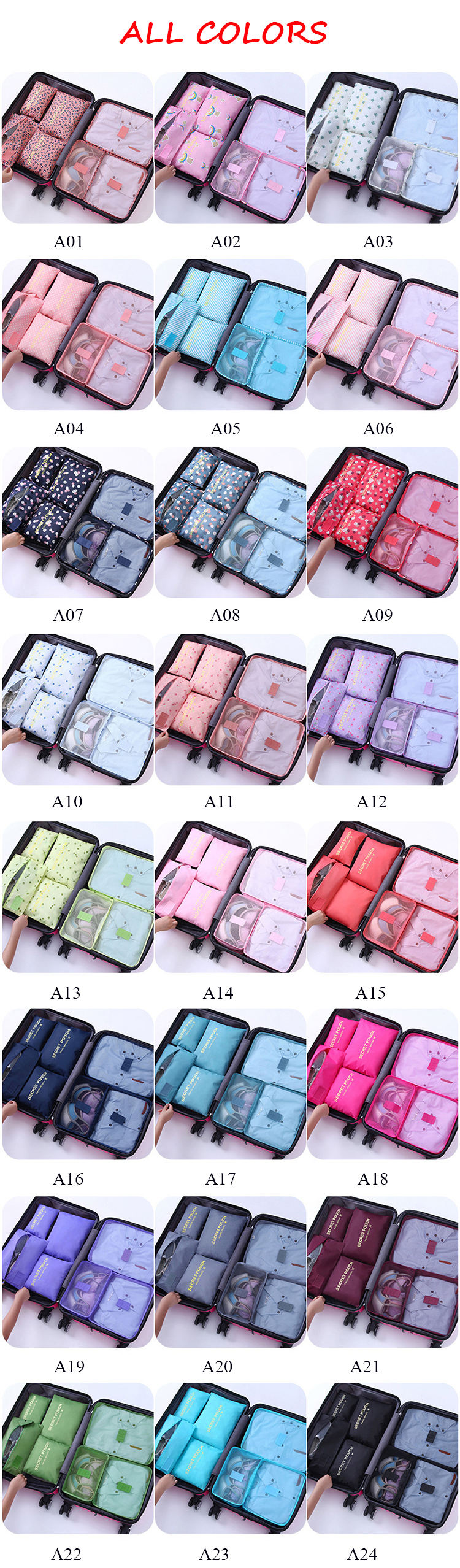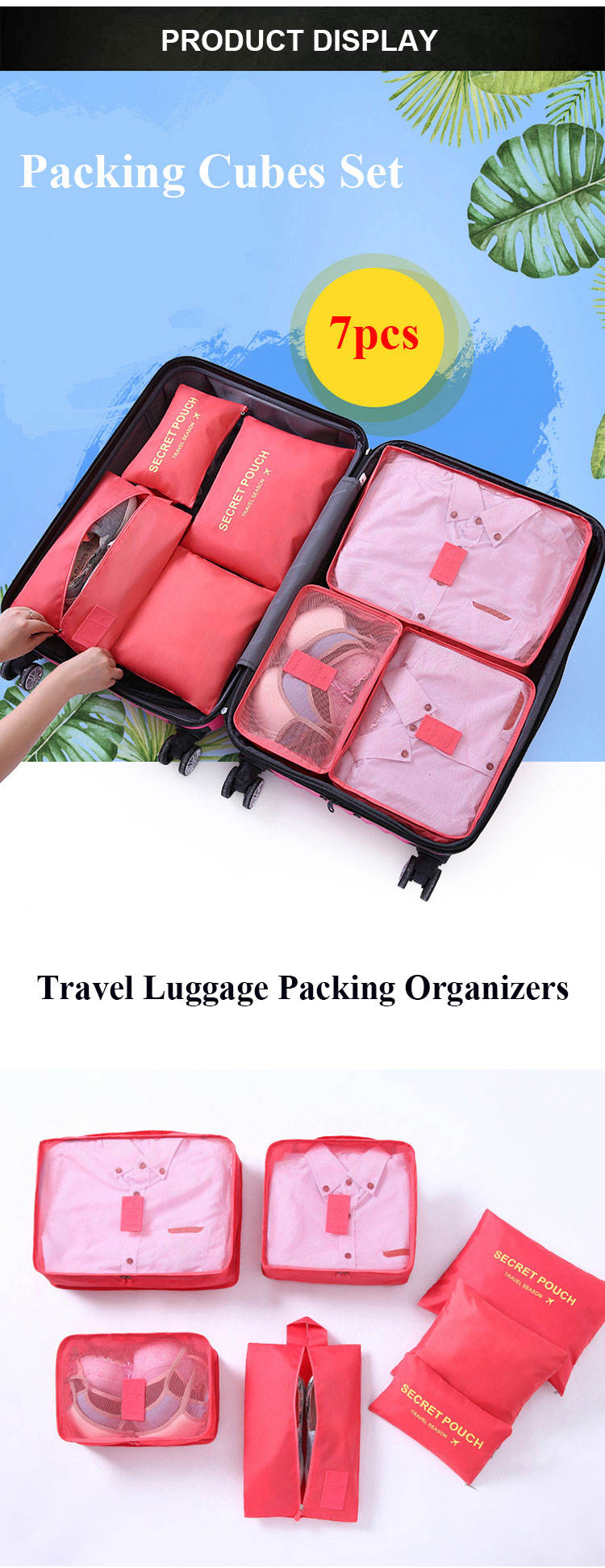 7pcs 여행 큐브 세트 접이식 경량 수하물 보관 가방