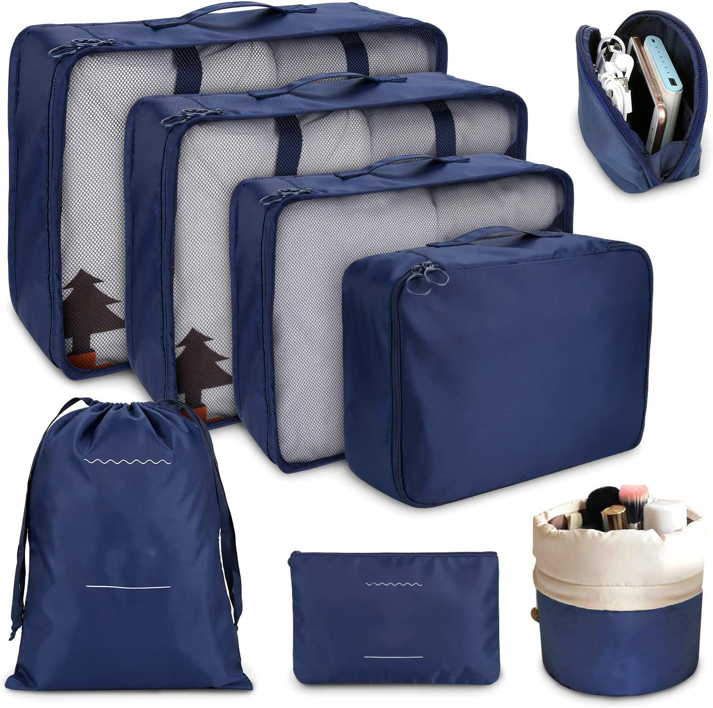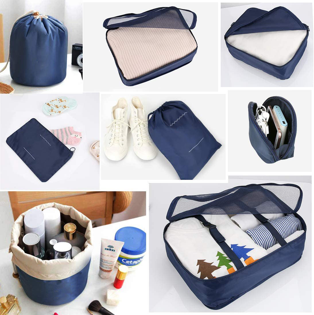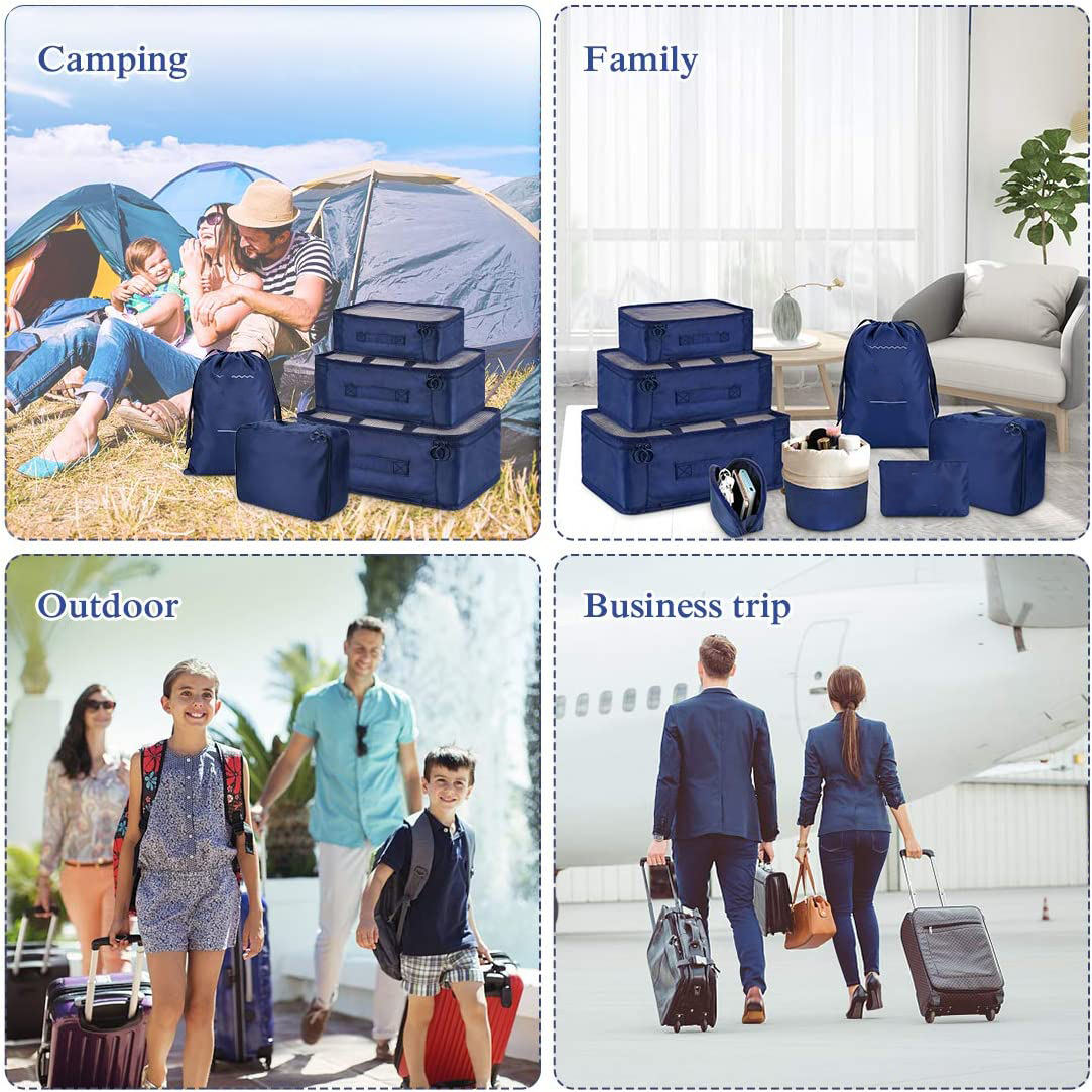 8pcs 여행 큐브 세트 - 포장용 3개 - 주머니 3개 - 속옷용 1개