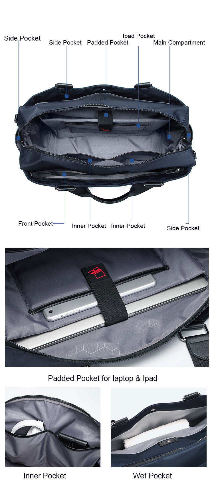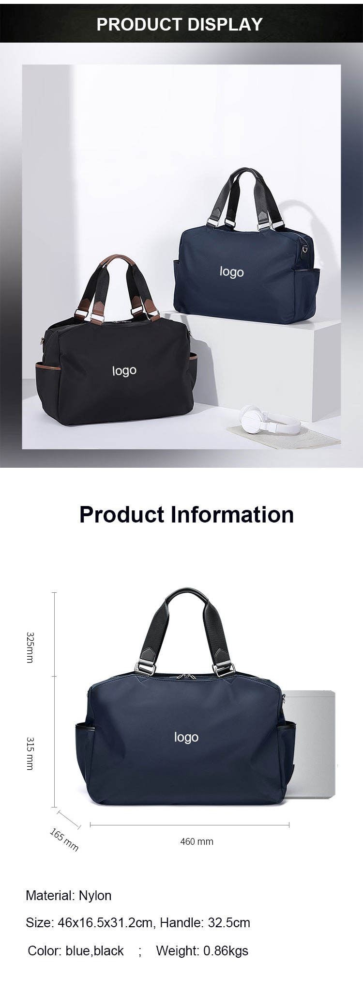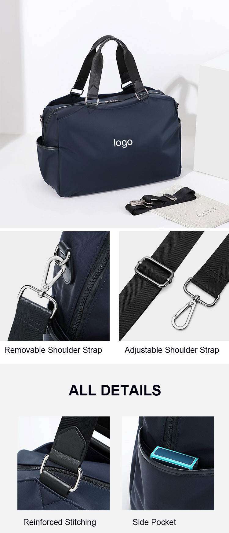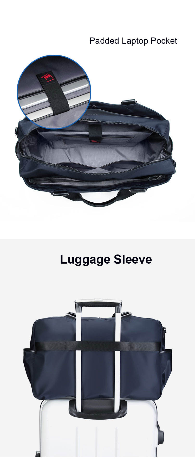 노트북 칸과 수하물 슬리브가 있는 맞춤형 럭셔리 위켄더 여행용 더플 백