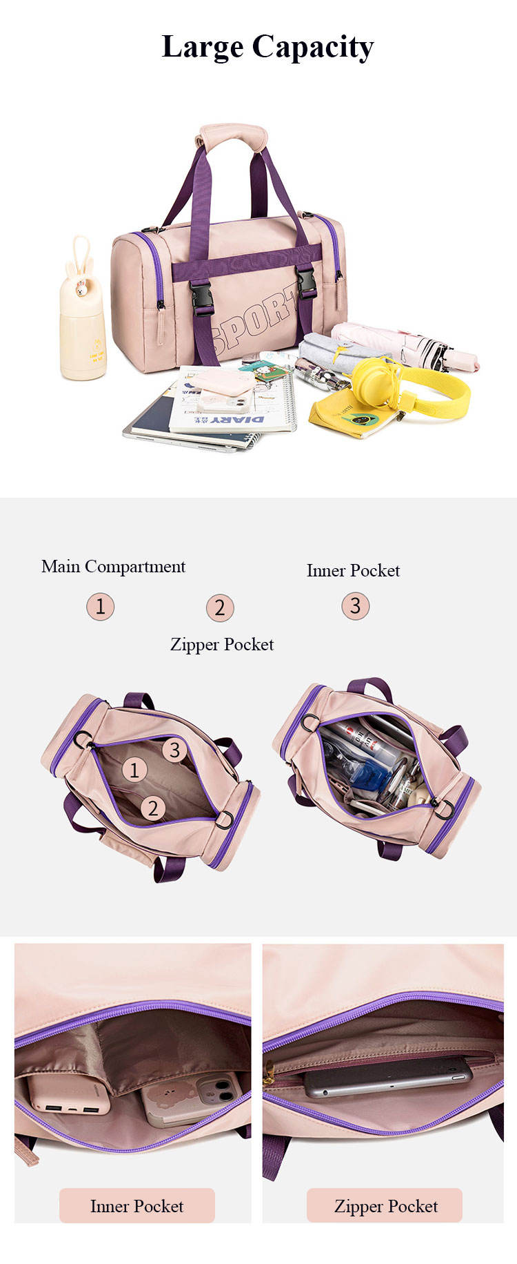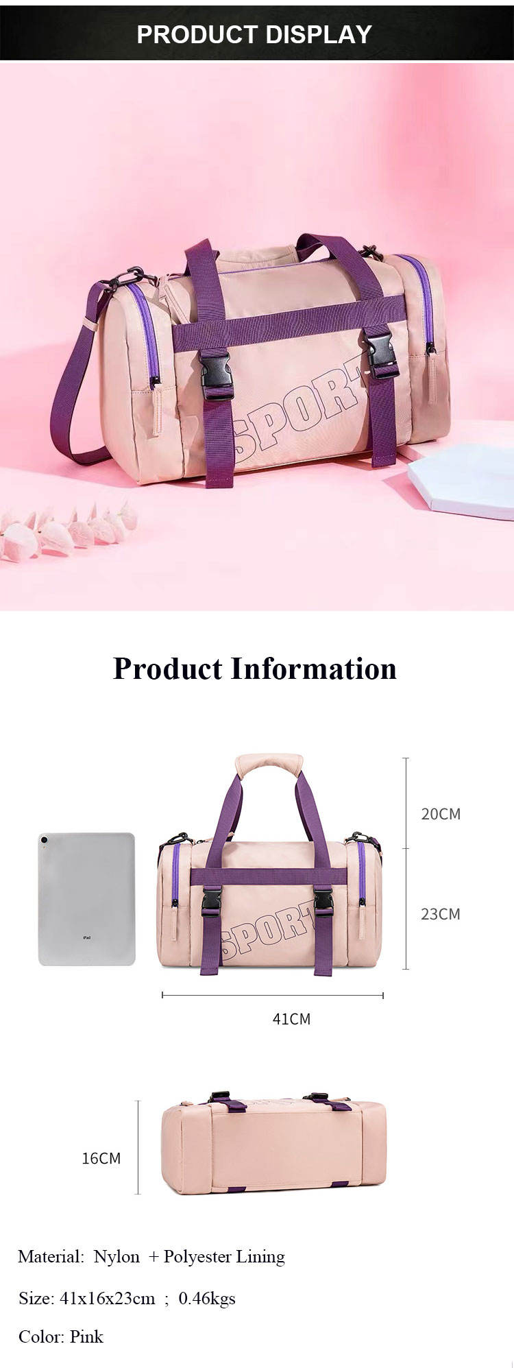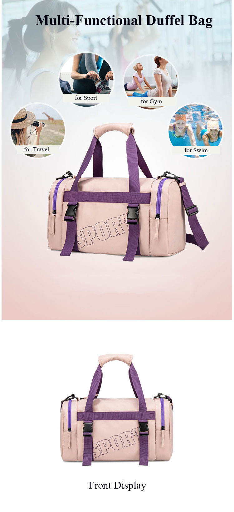 조정가능한 결박을 가진 주문 스포츠 여행 더플 백