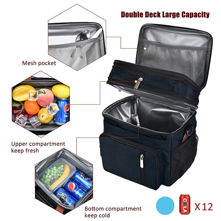 더블 레이어 새로운 절연도시락 아기 병 쿨러 대형 여행 도시락 가방
