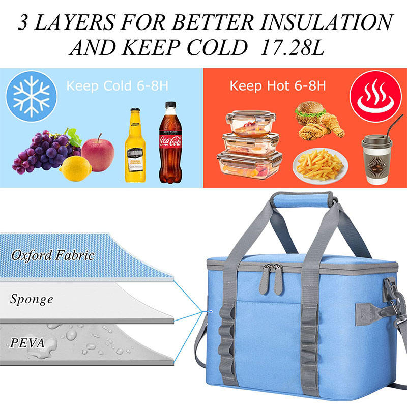 야외 피크닉 대형 회색 소프트 양면 식품 열 주최자 토트 캠핑 쿨러 가방