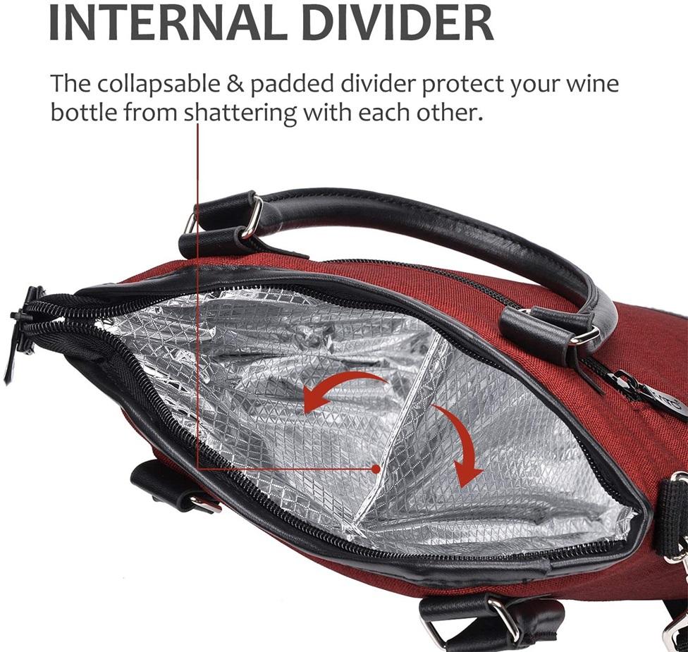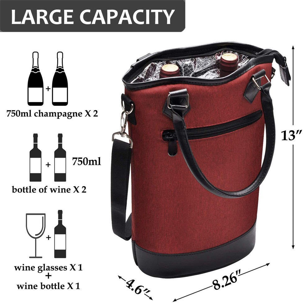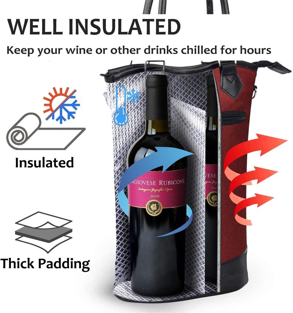 열 절연 패딩 보호 휴대용 여행 피크닉 2 병 와인 토트 캐리어
