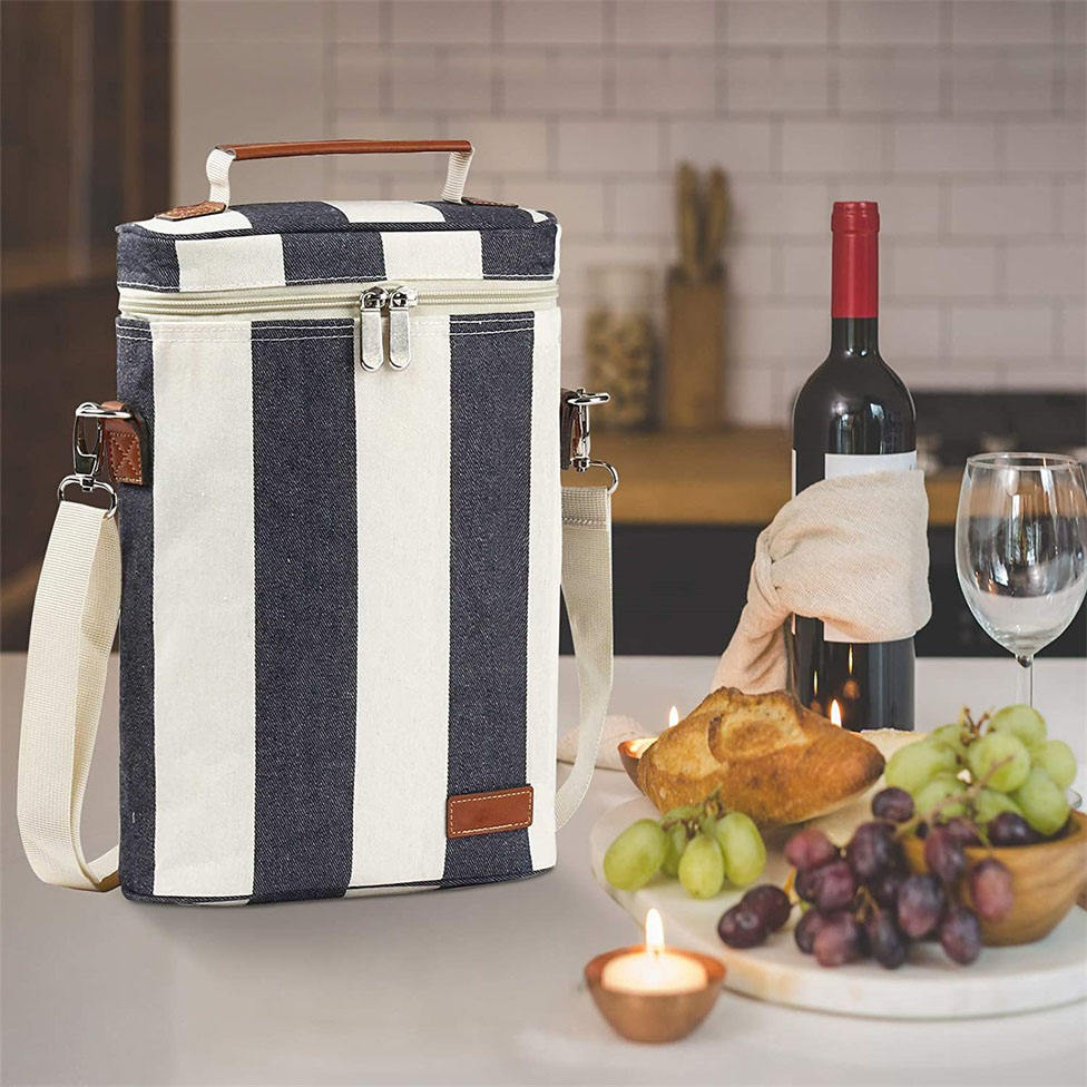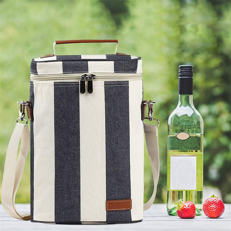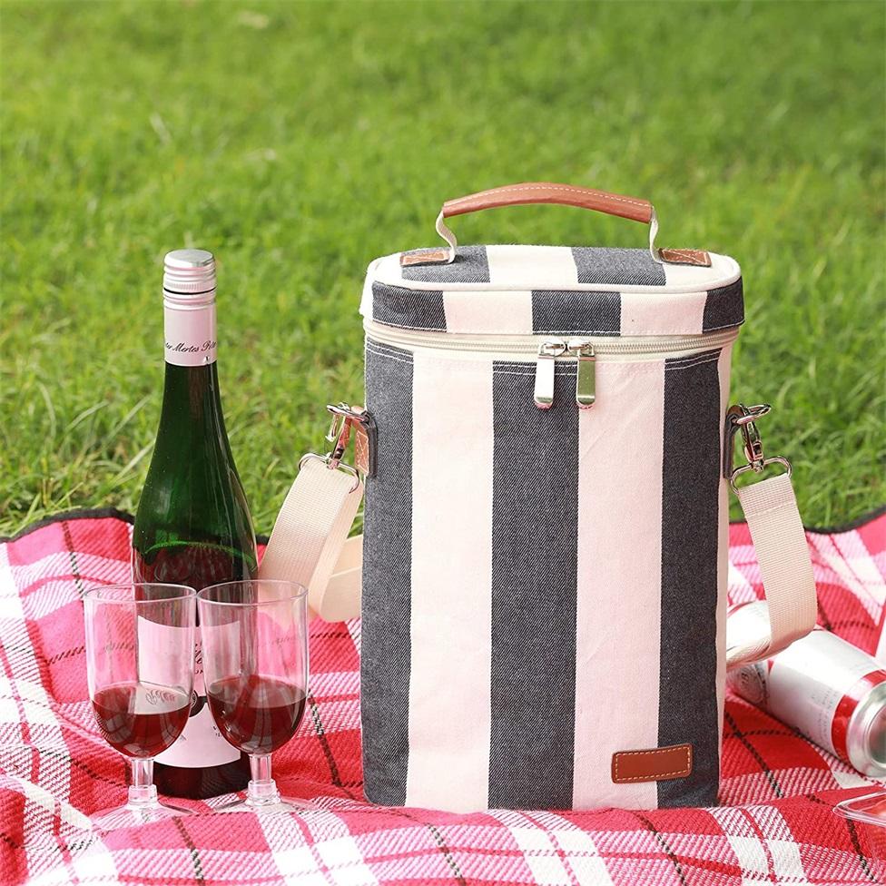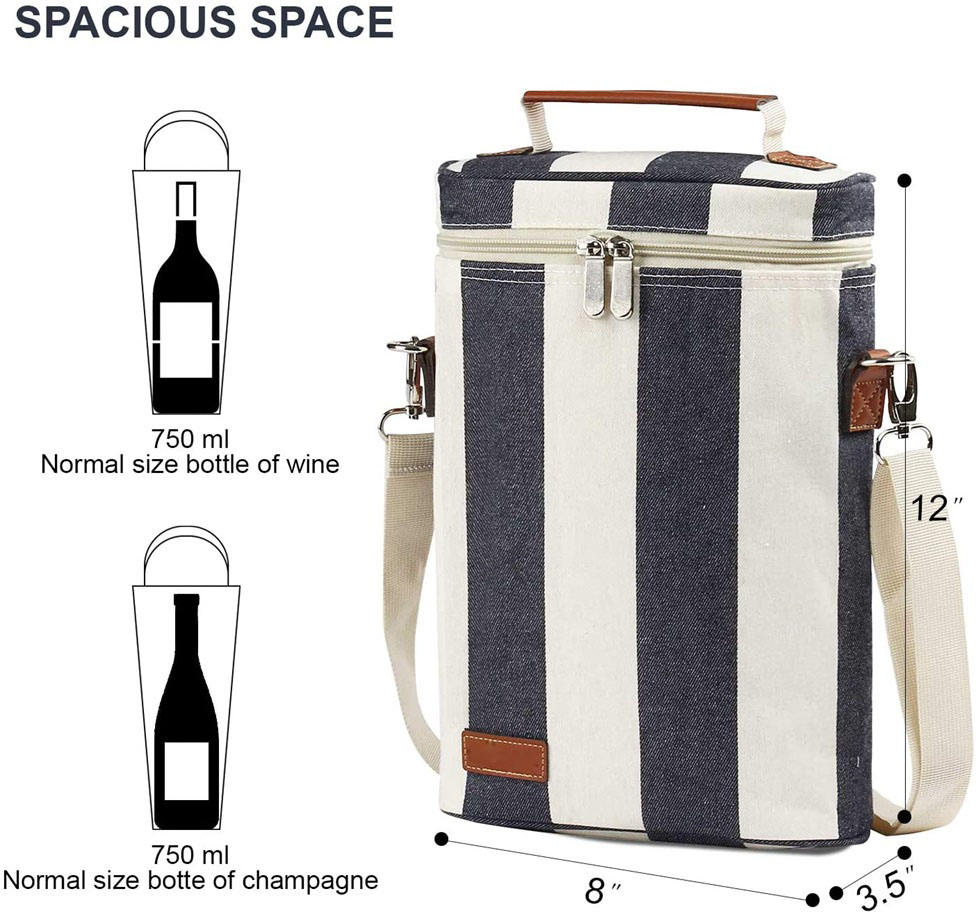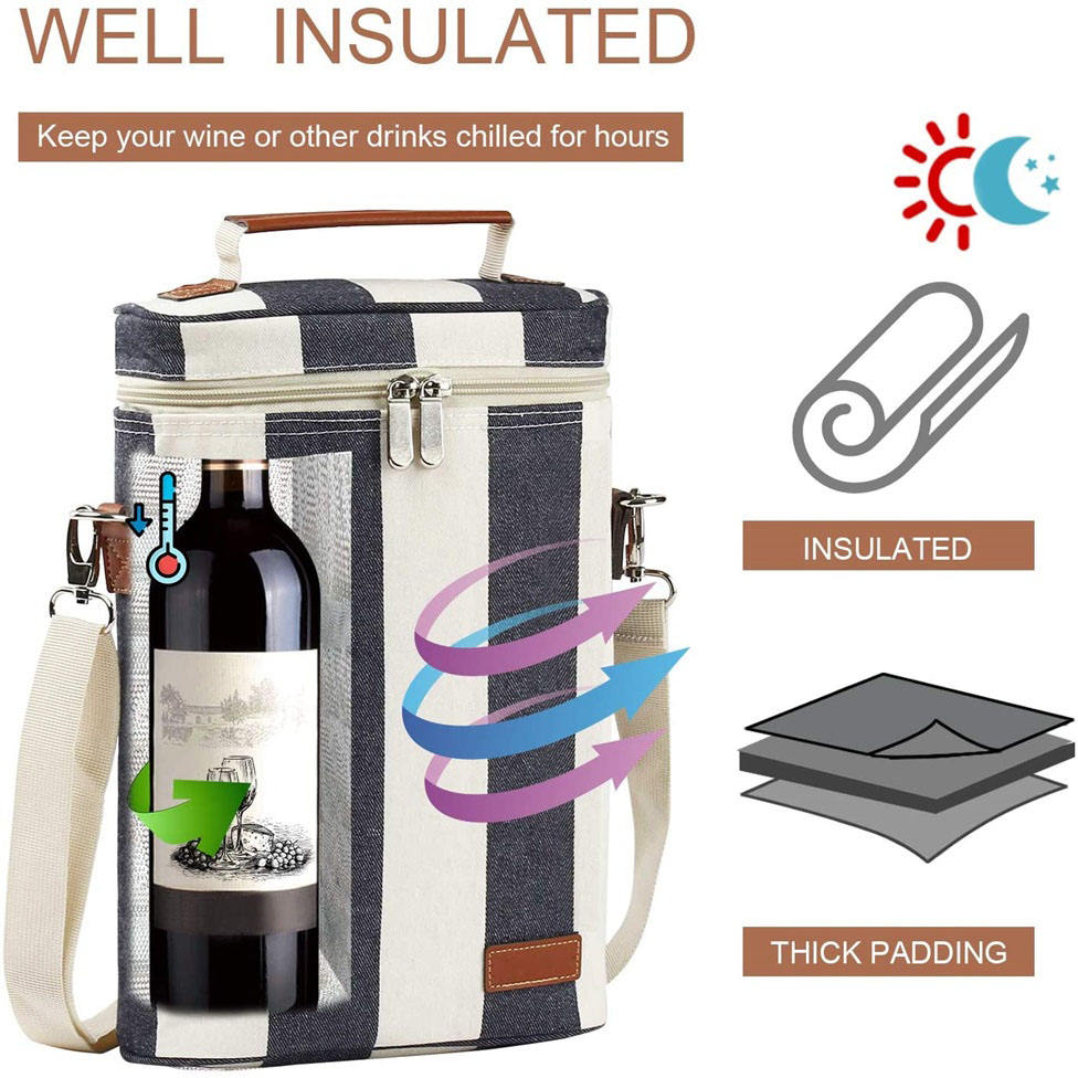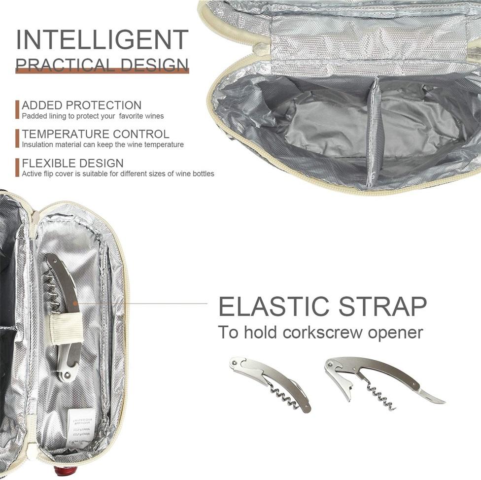 휴대용 피크닉 절연 패딩 2 병 와인 캐리어 토트 와인 쿨러 가방