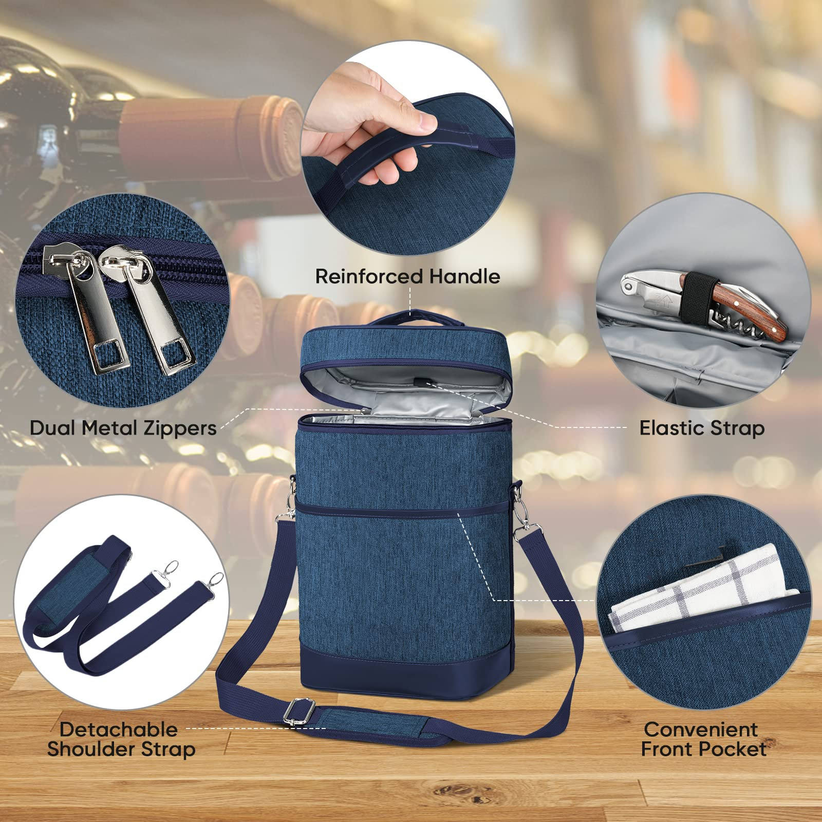 2 병 절연 누출 방지 와인 쿨러 가방 피크닉, 여행, 와인 선물