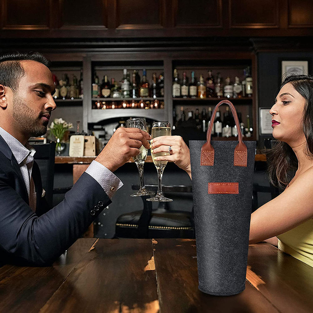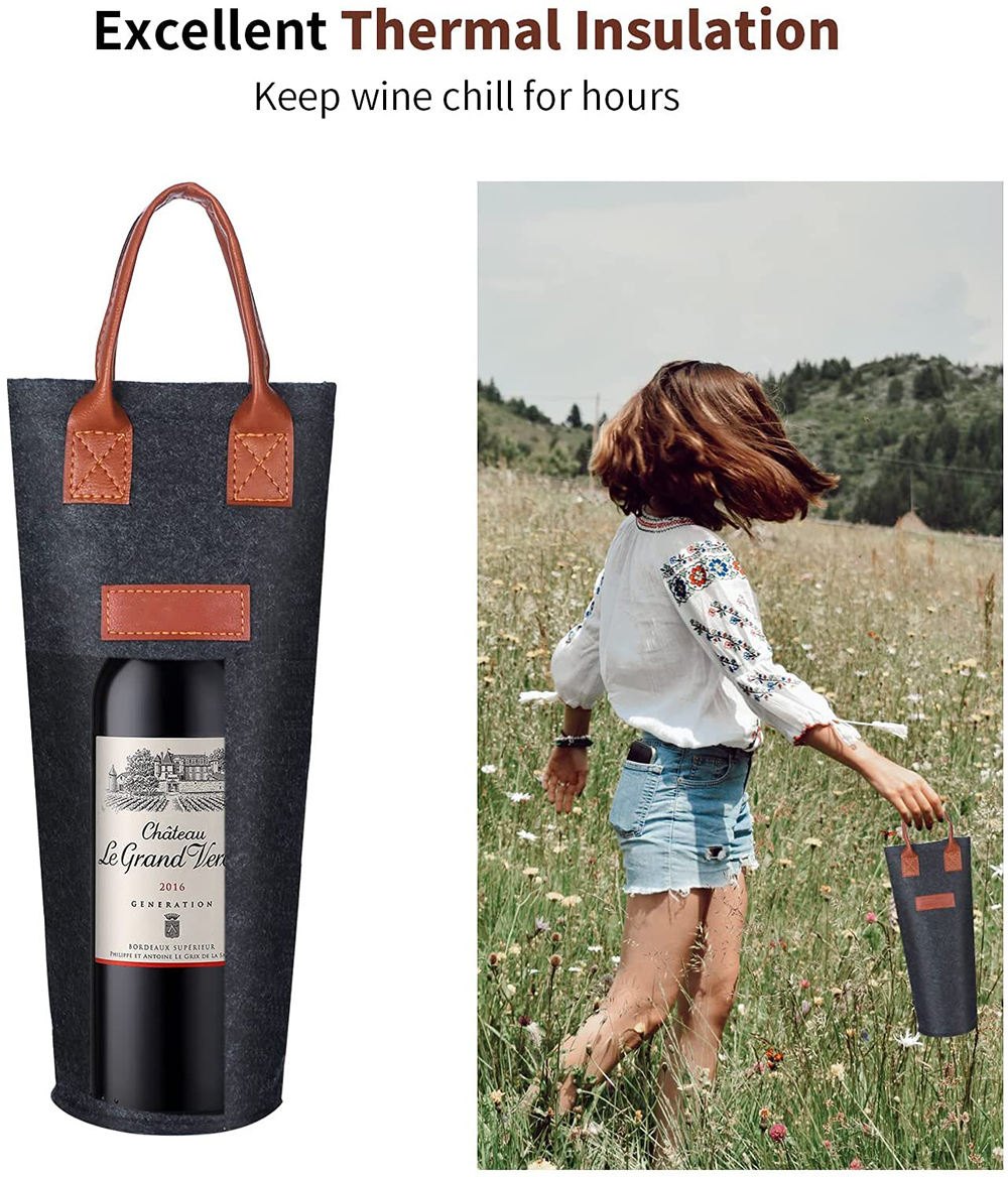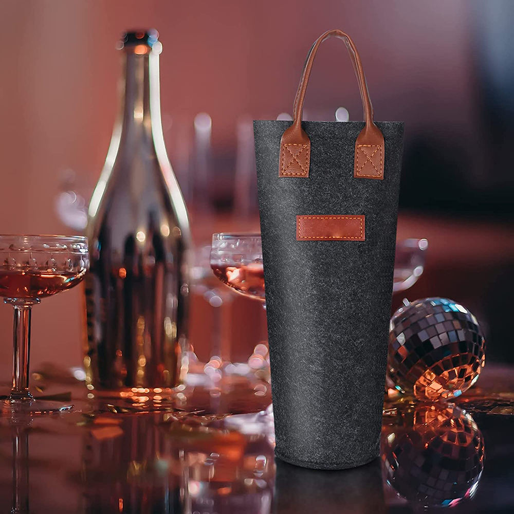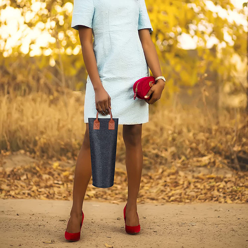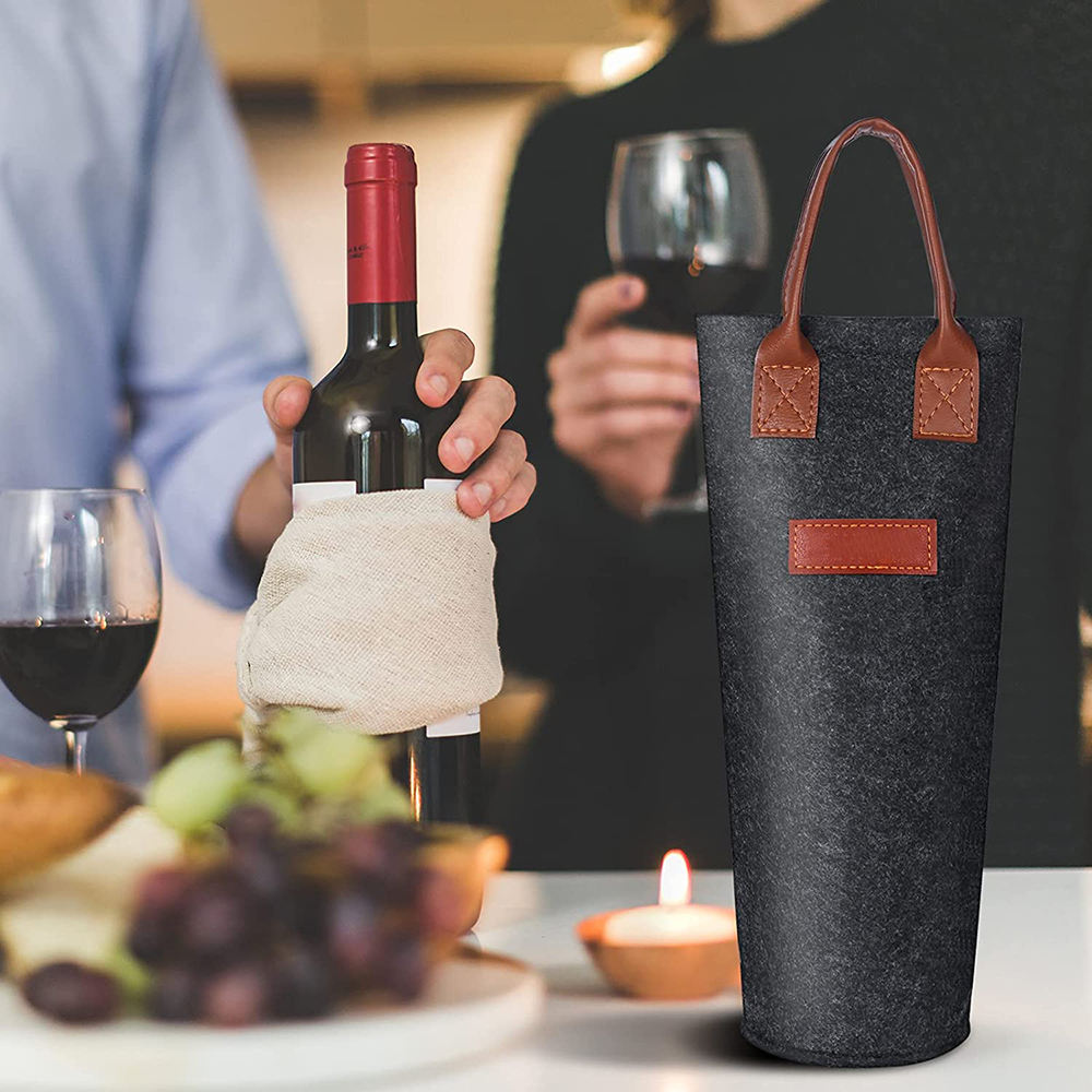 1 병 펠트 포도주 끈달린 가방, 가죽 휴대용 포도주 운반대