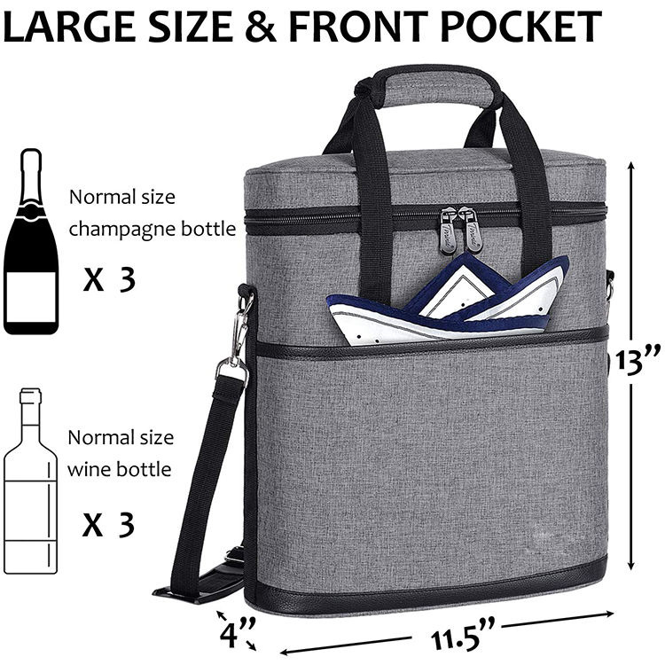 새로운 피크닉 3 병 와인 캐리 냉각 가방 절연 와인 쿨러 가방