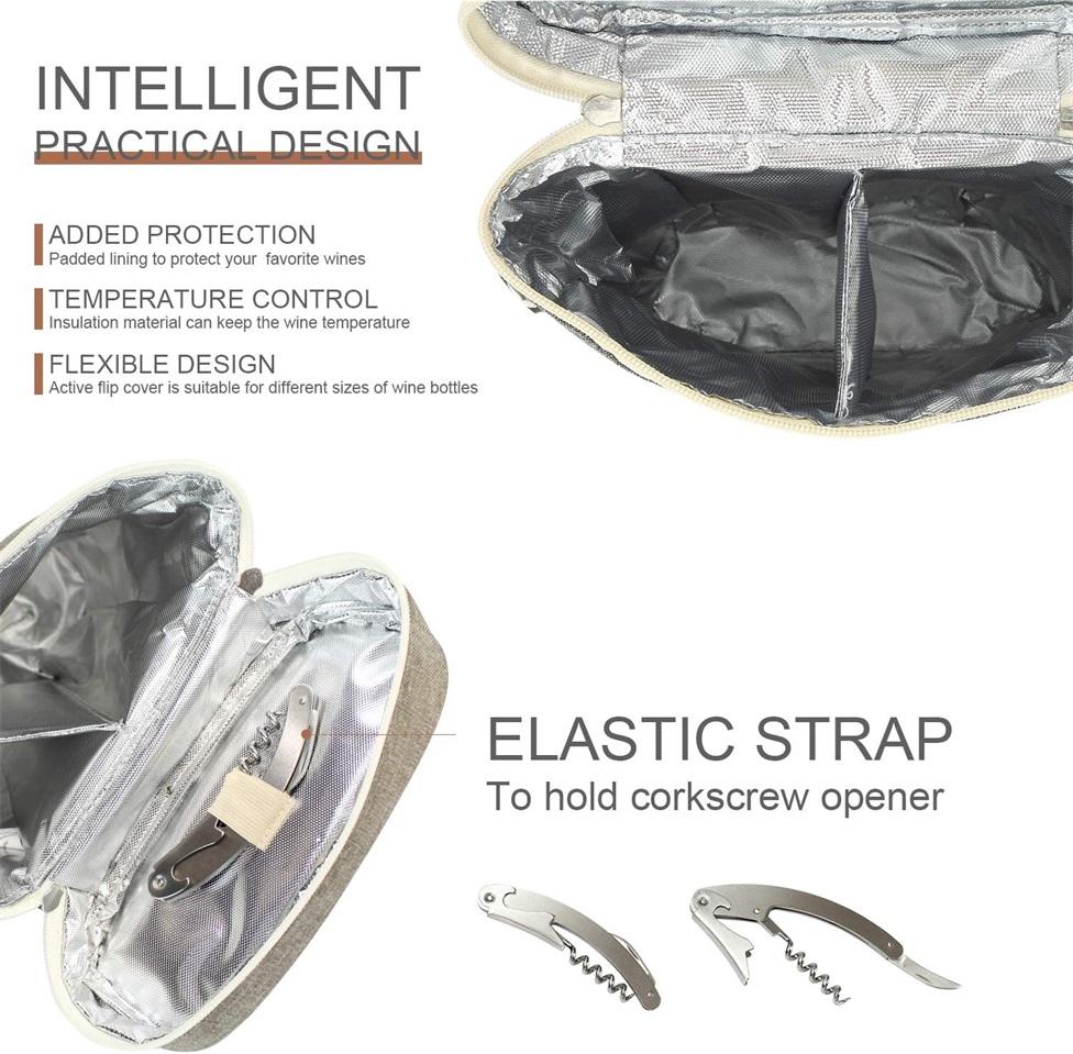 2 병 와인 쿨러 가방 절연 와인 캐리어 와인 토트 백 쿨러