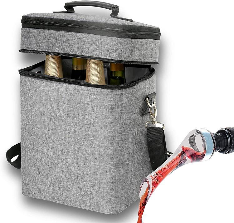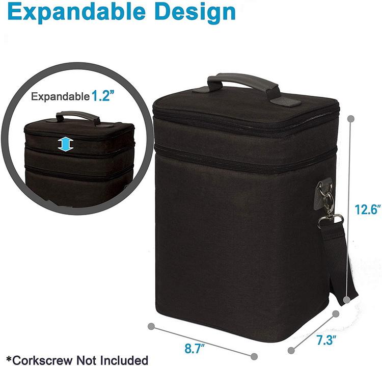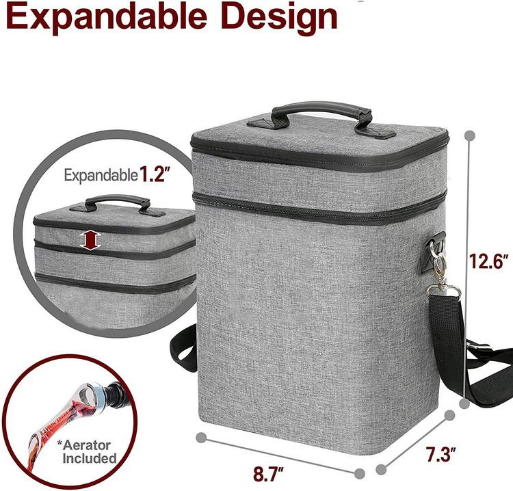 4 병 확장형 와인 보온병 와인 쿨러 백 (핸들 및 조절 가능)