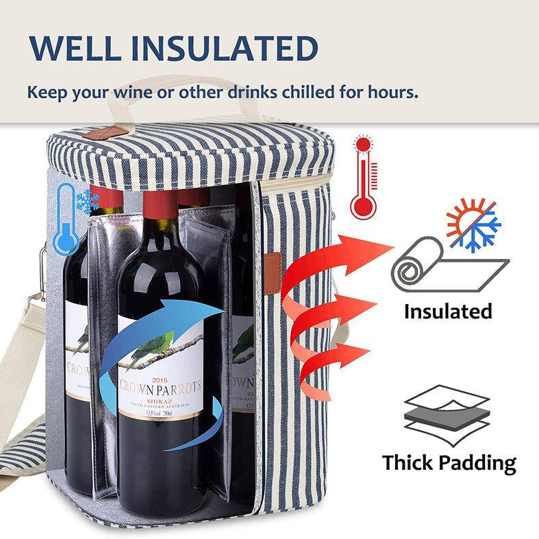 BSCI 4 병 와인 두꺼운 알루미늄 호일 냉장 와인 쿨러 가방