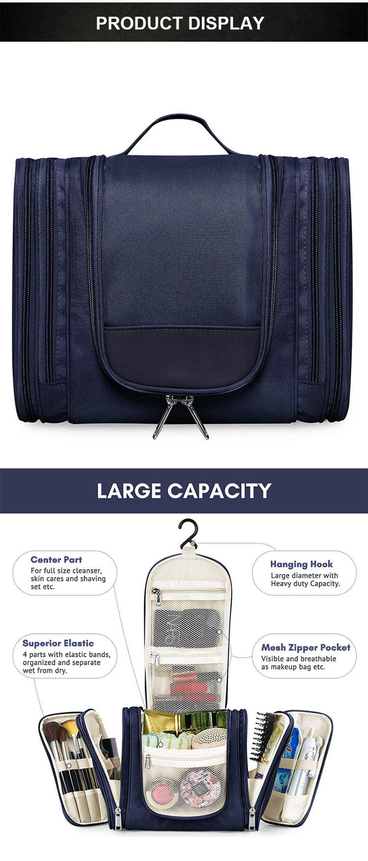 환경 친화적인 교수형 여행 세면 용품 가헤비 듀티 대형 메이크업 가방