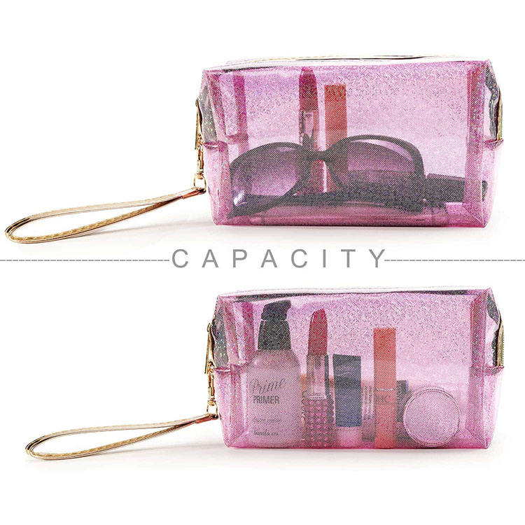 여성 PVC 플라스틱 투명 메이크업 미니 핑크 화장품 가방
