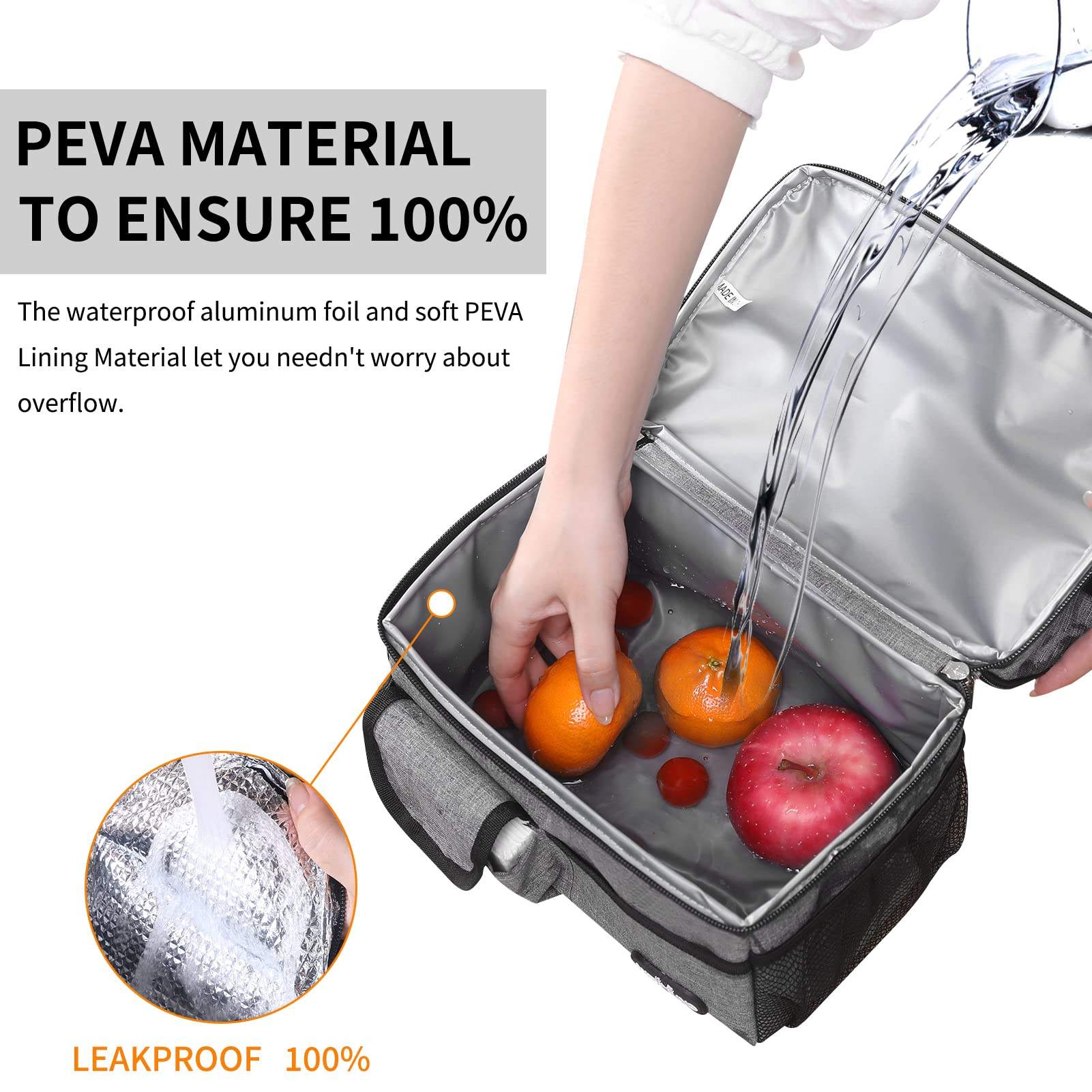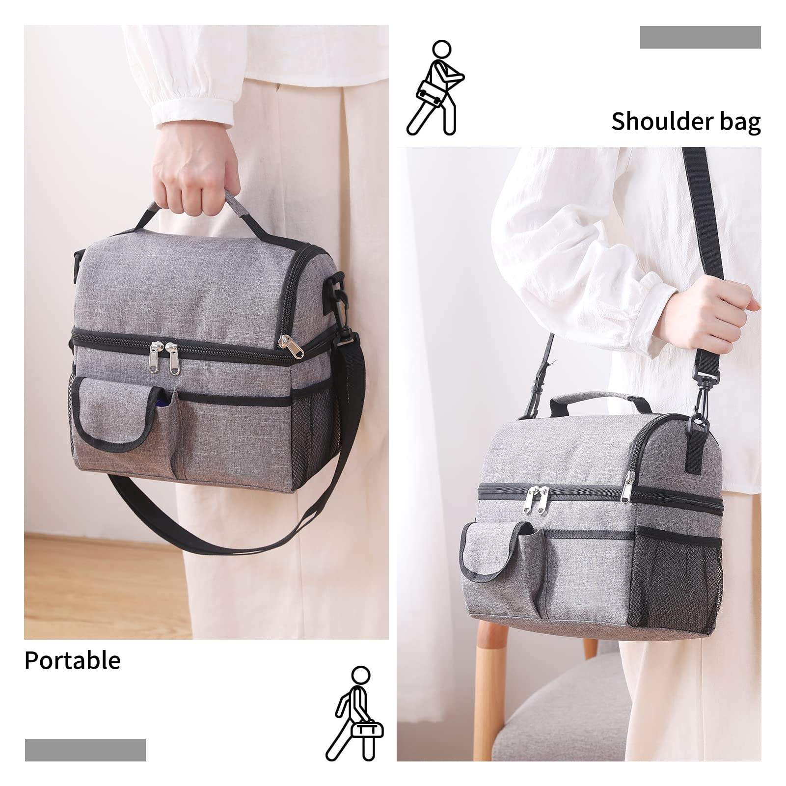 대형 2 구획 절연 점심 가방
