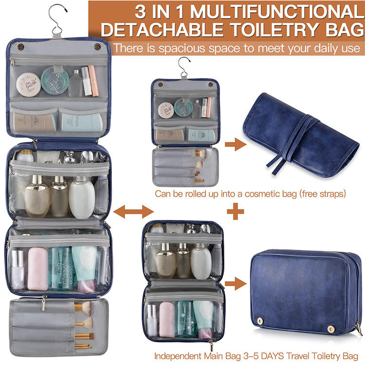 대용량 멀티 포켓 걸이 세면 용품 여행 PU 가죽 메이크업 가방