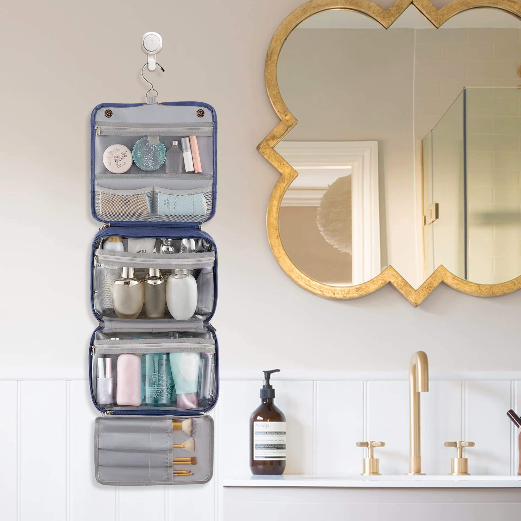 대용량 멀티 포켓  걸이 세면 용품  여행 PU 가죽 메이크업 가방